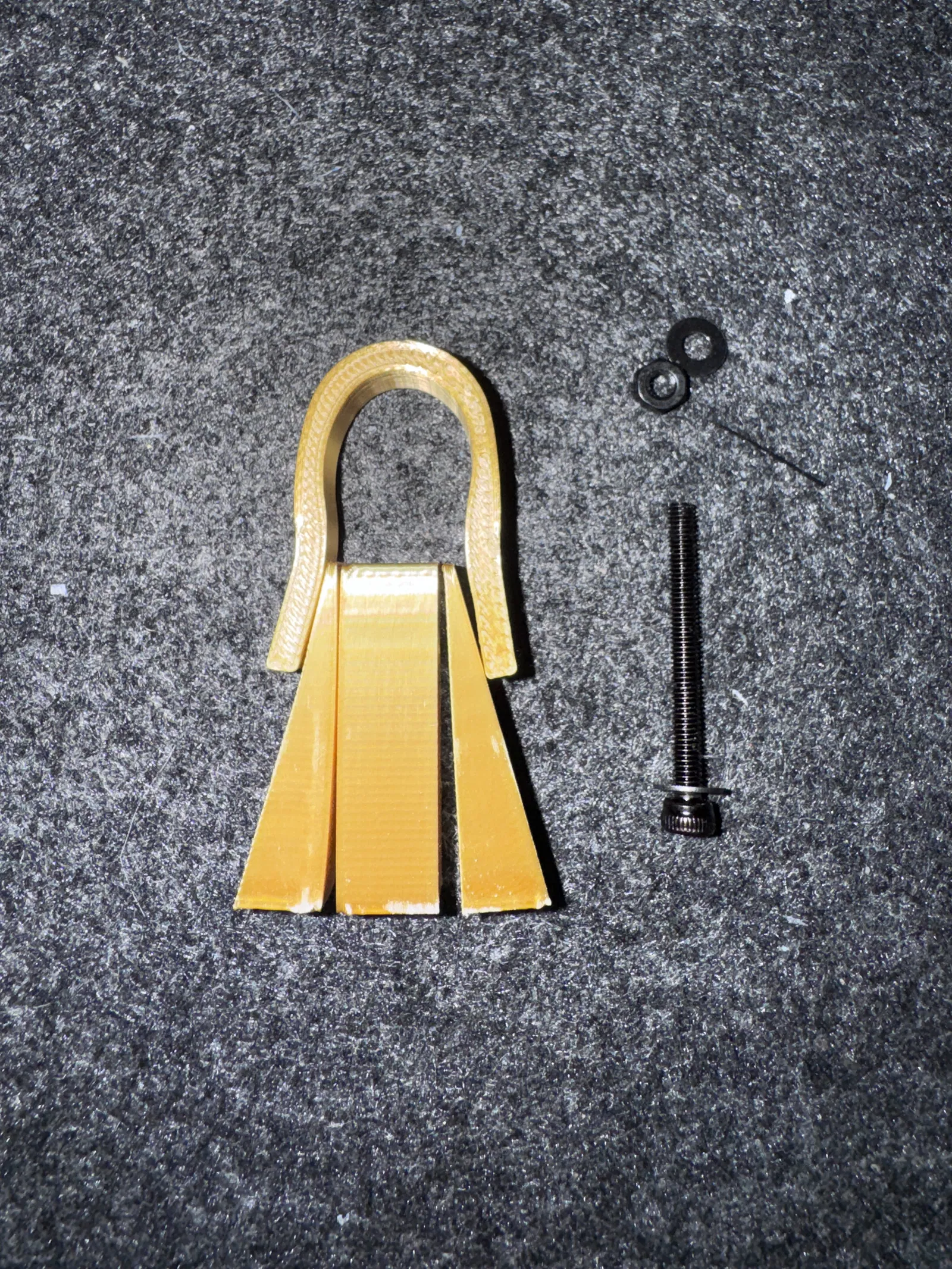 Đây là mẫu Lewis Pin truyền thống thường được dùng trong kiến trúc cổ. Bạn có thể thoải mái điều chỉnh kích thước tùy theo nhu cầu, tuy nhiên tệp tin này được thiết kế để sử dụng cho các lỗ có đường kính lên tới 3mm. Mình đã dùng một con ốc M3 X 30. Mẫu Lewis Pin trong hình chỉ mang tính chất trang trí và được in bằng nhựa Gold Silk PLA. Mọi người nhớ điều chỉnh thiết lập trên phần mềm slicer cho phù hợp với nhu cầu của mình nhé.