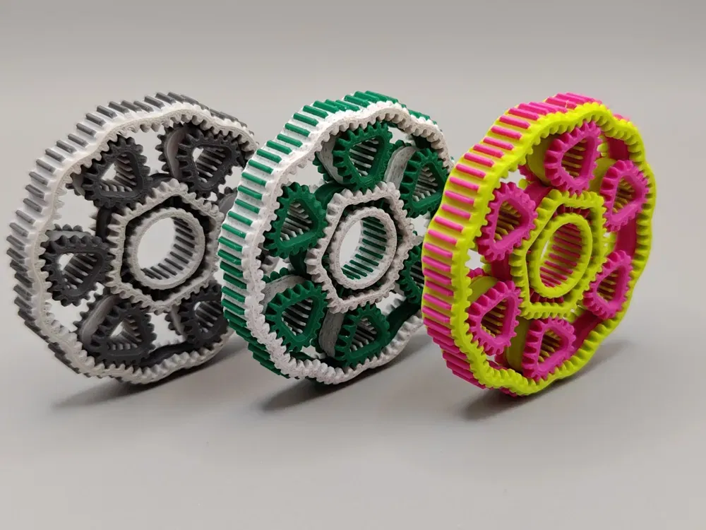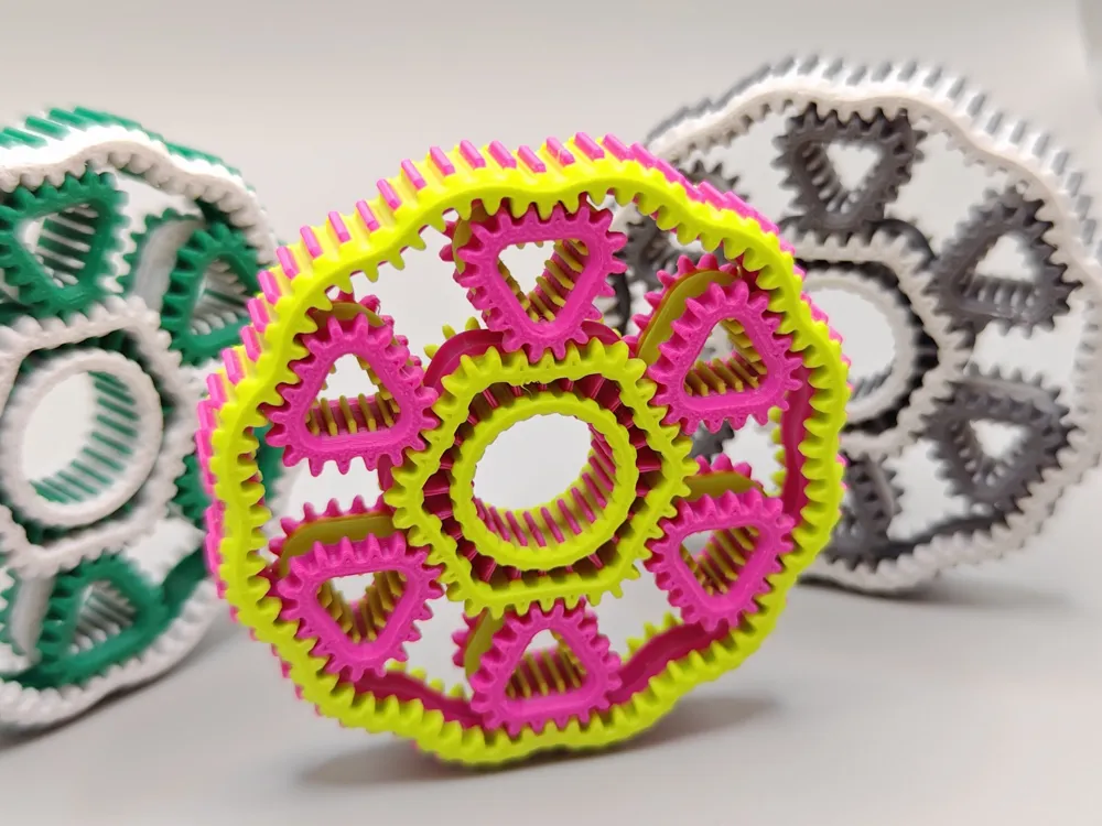 Đây là một trong hai mẫu fidget bánh răng hành tinh 6 bánh mới của mình. Mấy loại bánh răng tròn làm mãi cũng thấy quá đơn giản rồi, nên mình quyết định làm cái gì đó "kỳ cục" một chút. Mẫu này có hình tam giác, lục giác và mấy đường ziczac, nhưng mà xoay vẫn mượt mà cực kỳ nha.