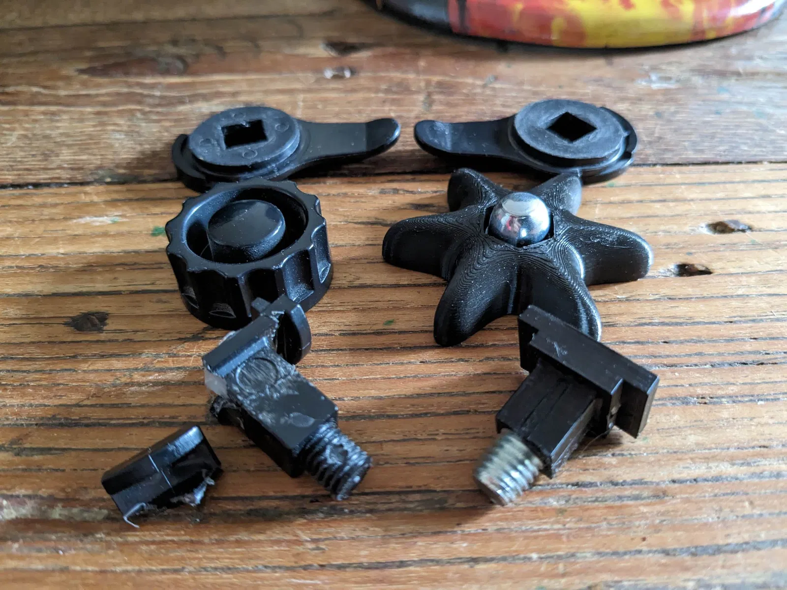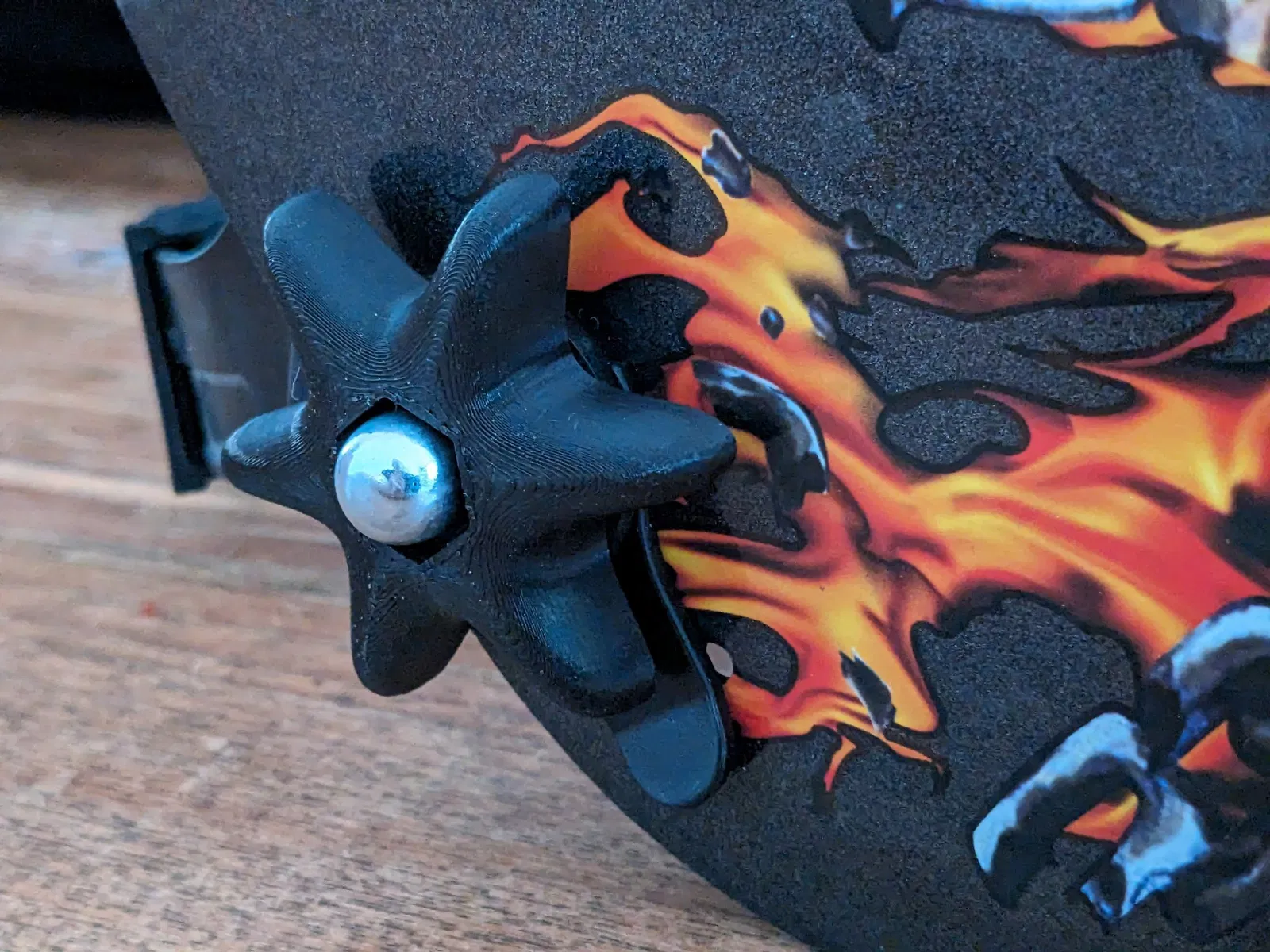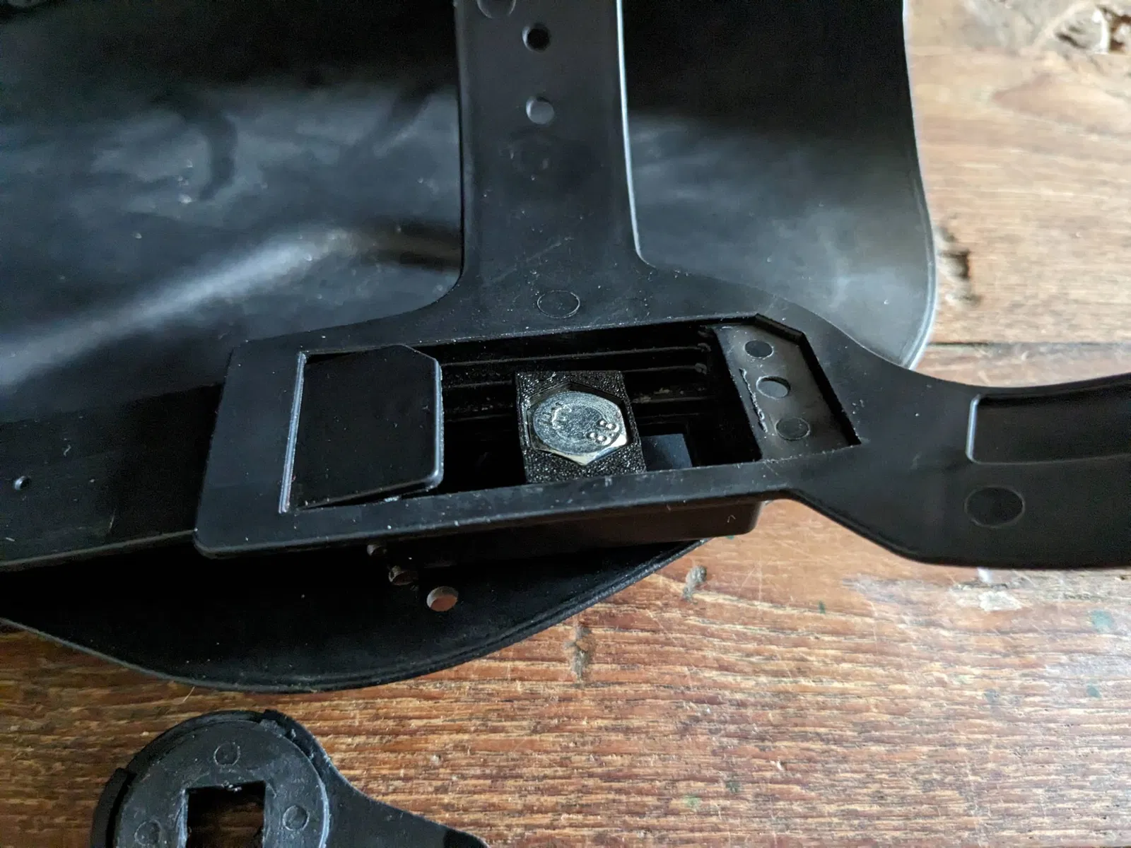 Phần cứng bản lề hoàn toàn bằng nhựa và đã bị gãy. Điều này thay thế các bản lề dựa trên bu lông và đai ốc M8. Đây sẽ là thứ cuối cùng bị gãy trên mặt nạ!