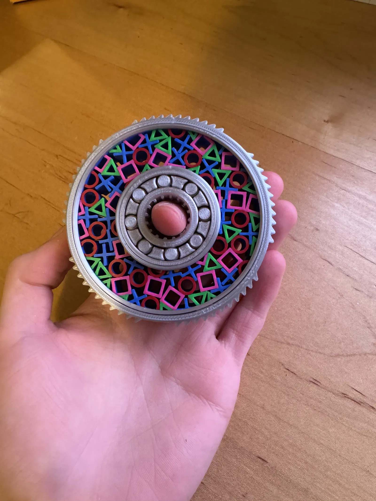 Điểm nhấn của chiếc Fidget Spinner này chính là các biểu tượng kinh điển như hình vuông, hình tròn, hình tam giác và dấu chéo được lồng ghép tinh tế vào khung máy. Với thiết kế tối ưu hóa độ cân bằng, đây được xem là một trong những mẫu spinner có tốc độ xoay nhanh và mượt mà nhất mà bạn có thể tự tay in ấn. Cầm trên tay, bạn sẽ cảm nhận được sự tỉ mỉ trong từng chi tiết, tạo cảm giác thư giãn tuyệt vời khi xoay trong những lúc làm việc căng thẳng hoặc cần tập trung suy nghĩ.