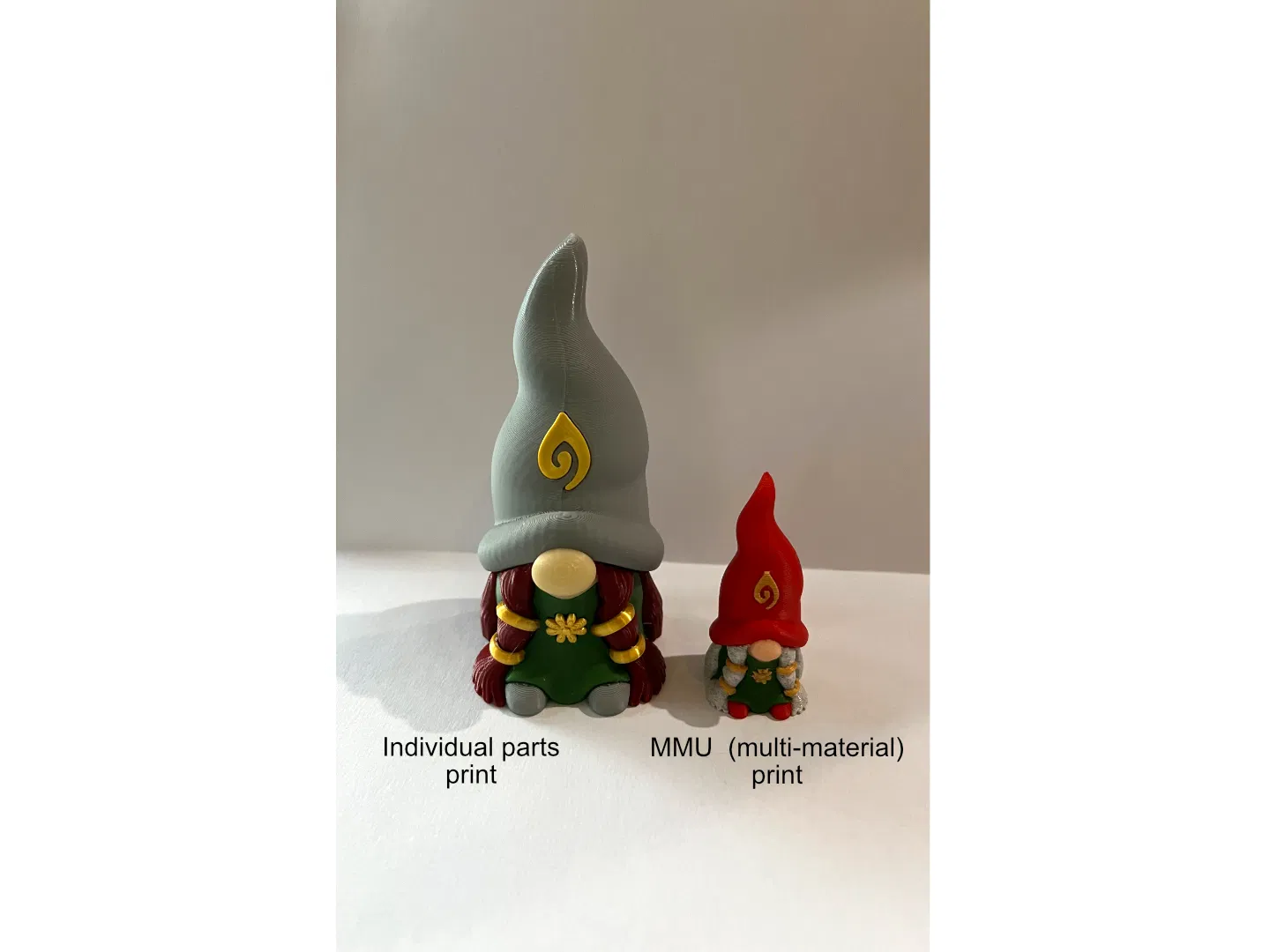 Phiên bản MMU của mô hình Nữ Gnome kèm theo logo 'Church of Gnome'. Mô hình MMU này được phát triển từ mẫu Nữ Gnome đa mảnh trước đây của tôi (đã được tinh chỉnh để in đa vật liệu một cách sạch sẽ). Đây là mô hình in đa vật liệu mà vợ tôi nhờ làm cho trang Facebook vui nhộn 'Church of Gnome' (chúng tôi không phải là giáo phái đâu nha). Mô hình này có chiều cao 49mm. Ghi chú thêm: Tôi sử dụng cấu hình mặc định .2mm speed của PrusaSlicer, cùng với support organic 29 độ cho máy MK4S/MMU3 của mình.