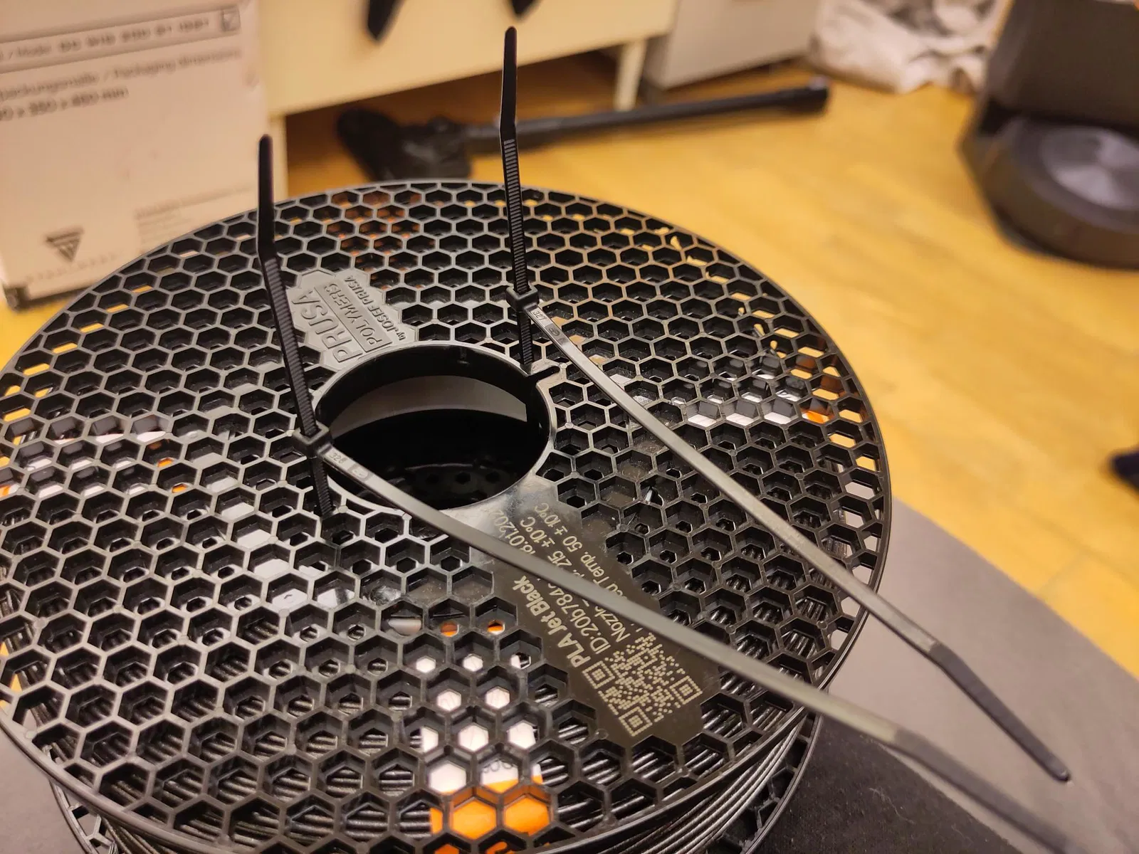 Mình có đặt mua một cuộn PLA Galaxy Black dạng refill mà không biết là nó dành cho loại ống mới cho đến khi hàng về tới nhà. Để lắp vừa, mình đã thiết kế cái adapter này để gắn phần refill mới vào ống Prusament kiểu cũ. Đường kính và độ rộng được mình thiết kế dựa trên cuộn refill mình đang có: đường kính 101mm và rộng 55mm. Bạn chỉ việc in ra rồi thay thế cái ống giấy carton cũ đi là được. Mình khuyên là nên in thử một lát cắt của mô hình trước để xem nó có bị quá chật hay quá lỏng không nhé. Mình nghĩ là ống sẽ không tự bung ra đâu, nhưng mình cũng chưa thử chạy máy in liên tục nhiều giờ hay nhiều ngày liền. Bạn hoàn toàn có thể tháo nó ra để tái sử dụng cho lần sau. Nếu muốn chắc chắn hơn nữa để cuộn không bị bung, bạn có thể cố định hai nửa cuộn dây bằng đai ốc và bu-lông (giống như trong sách hướng dẫn của Prusa) hoặc dùng dây rút nhựa luồn qua tâm ống. Trong hình mình có đính kèm cách dùng dây rút: mình luồn chúng qua các lỗ lục giác ở giữa ống và đặt phần đầu khóa ở mặt bên kia. Mình siết tay trước rồi dùng kìm kẹp chặt thêm đúng một "nấc" nữa để tạo độ căng vừa phải. Mình đã in bằng nhựa PETg. Hy vọng cái này giúp ích được cho mọi người. Chúc các bạn in ấn vui vẻ <3