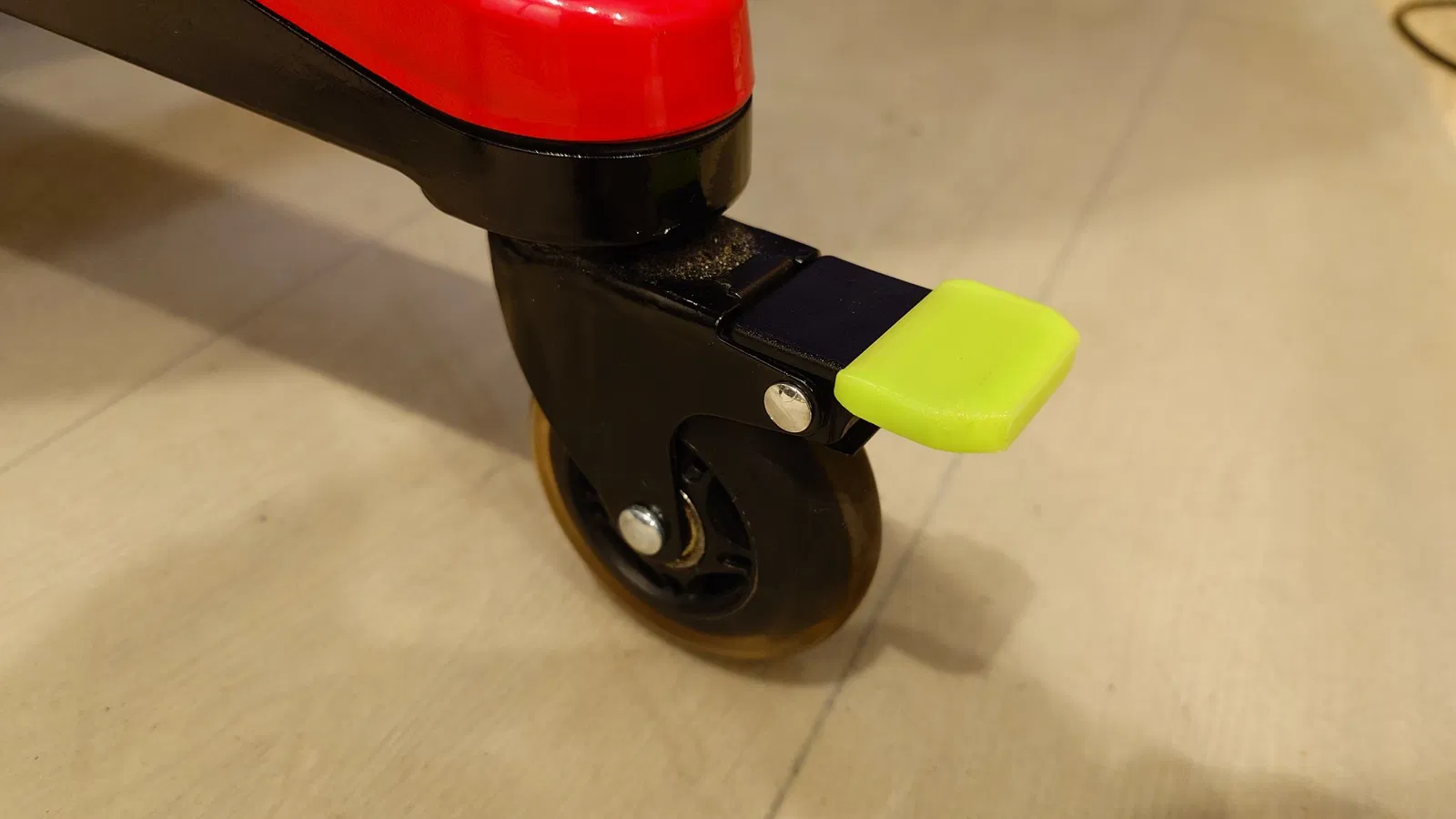 Miếng ốp bằng nhựa TPU giúp che đi phần lẫy phanh sắc nhọn trên bánh xe ghế, bảo vệ gót chân của bạn khỏi trầy xước khi di chuyển. Thiết kế đơn giản, dễ in, giúp việc ngồi ghế an toàn và thoải mái hơn.