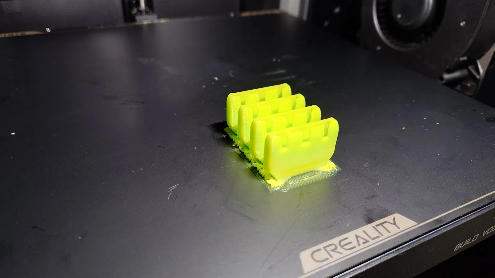 Mình vừa mua bộ bánh xe tốt hơn có kèm phanh cho ghế để tránh bị trượt khi đang chơi game đua xe (sim racing). Vấn đề là mỗi khi mình di chuyển ghế, thỉnh thoảng suýt phải vào viện khâu gót chân vì mấy cái lẫy phanh nó cứa vào đau quá. Để giải quyết việc này, mình đã thiết kế miếng ốp bằng nhựa TPU gắn vào để che đi mấy cái cạnh sắc bén đó, giờ mình có thể di chuyển ghế thoải mái mà không lo bị thương nữa. Mình khuyên các bạn nên in miếng ốp này theo chiều hướng lên trên, dùng thêm phần bệ đỡ (brim) và một ít hỗ trợ (supports) cho các góc bo tròn như trong hình để đạt kết quả tốt nhất và tránh việc hỗ trợ bị lọt vào bên trong bản in. Không có trí tuệ nhân tạo nào được sử dụng trong quá trình tạo ra mô hình đơn giản này.