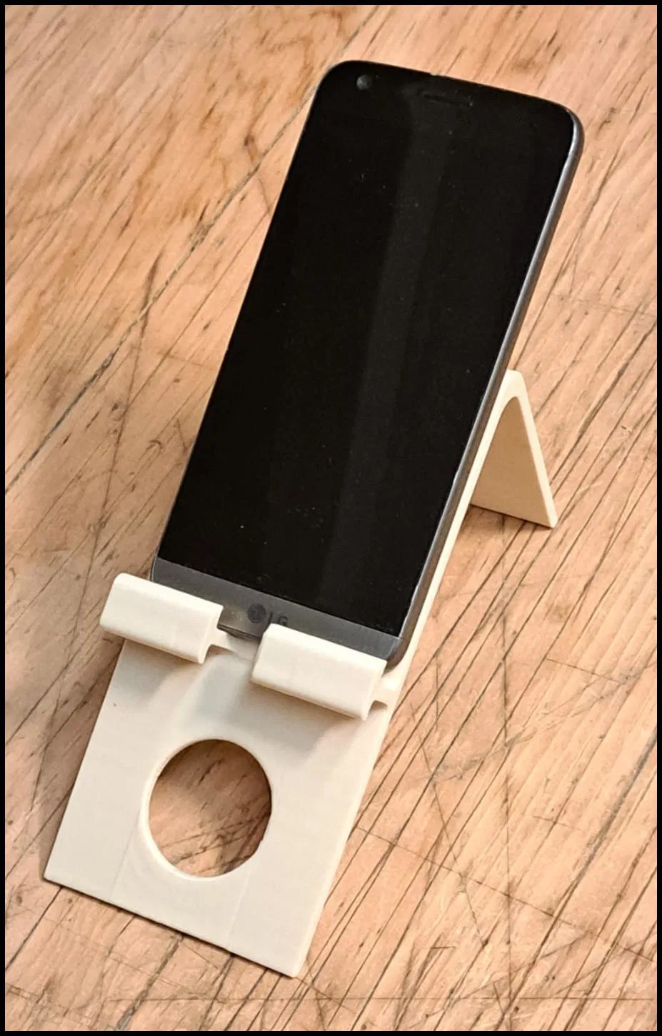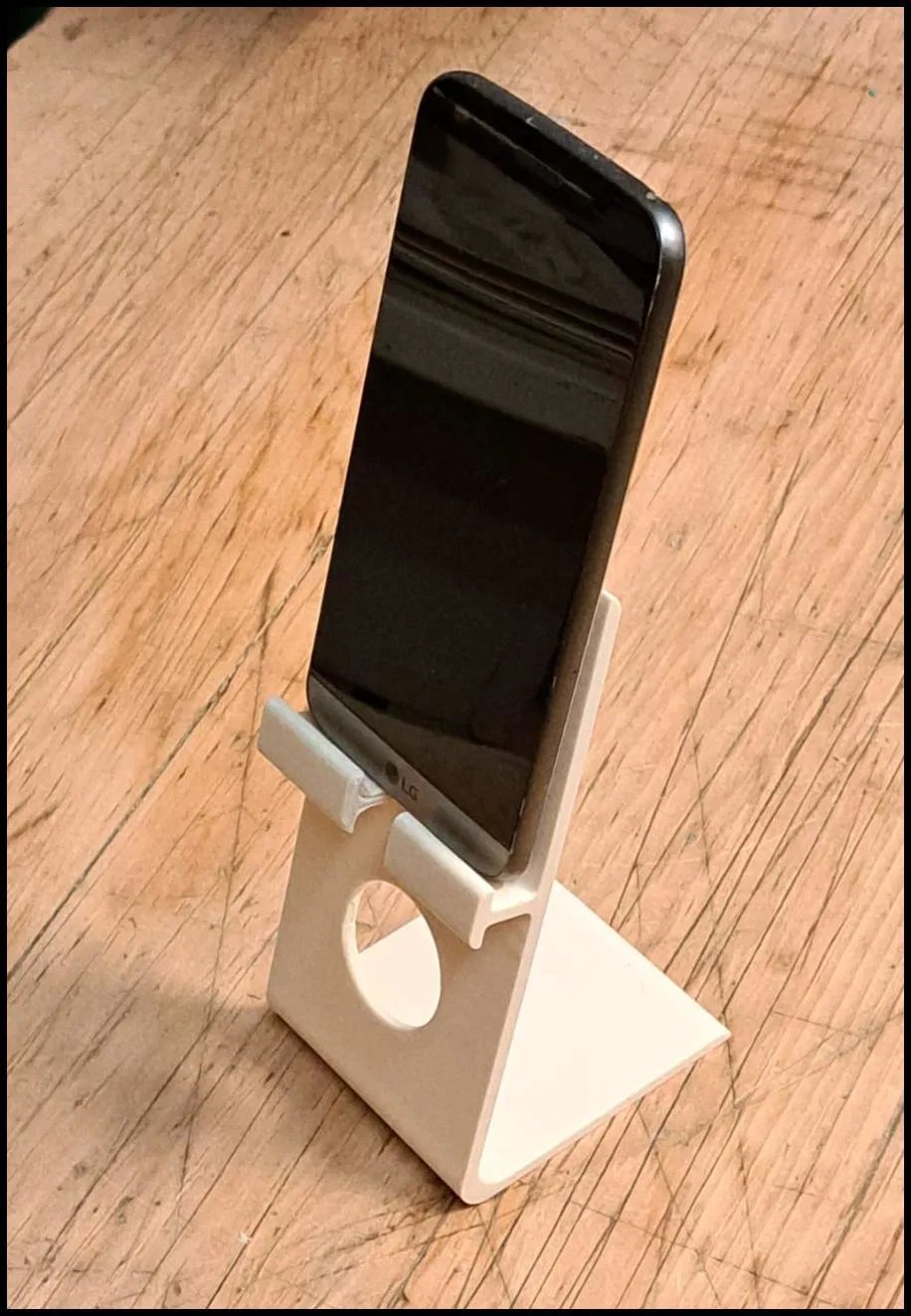 Mẫu đế điện thoại này cực kỳ gọn nhẹ vì chỉ gồm một chi tiết duy nhất. Thiết kế thông minh cho phép bạn để điện thoại ở 2 góc độ khác nhau và có sẵn rãnh để đi dây sạc rất tiện lợi.