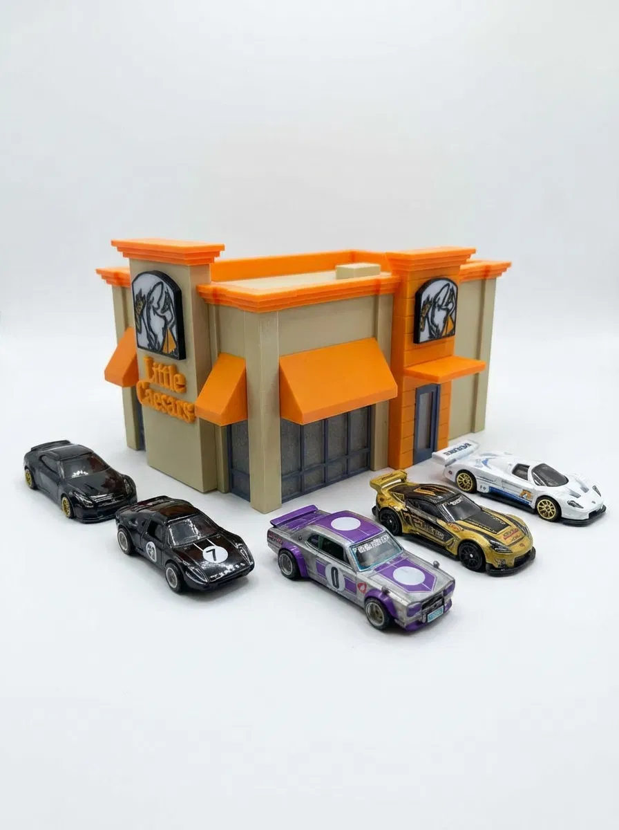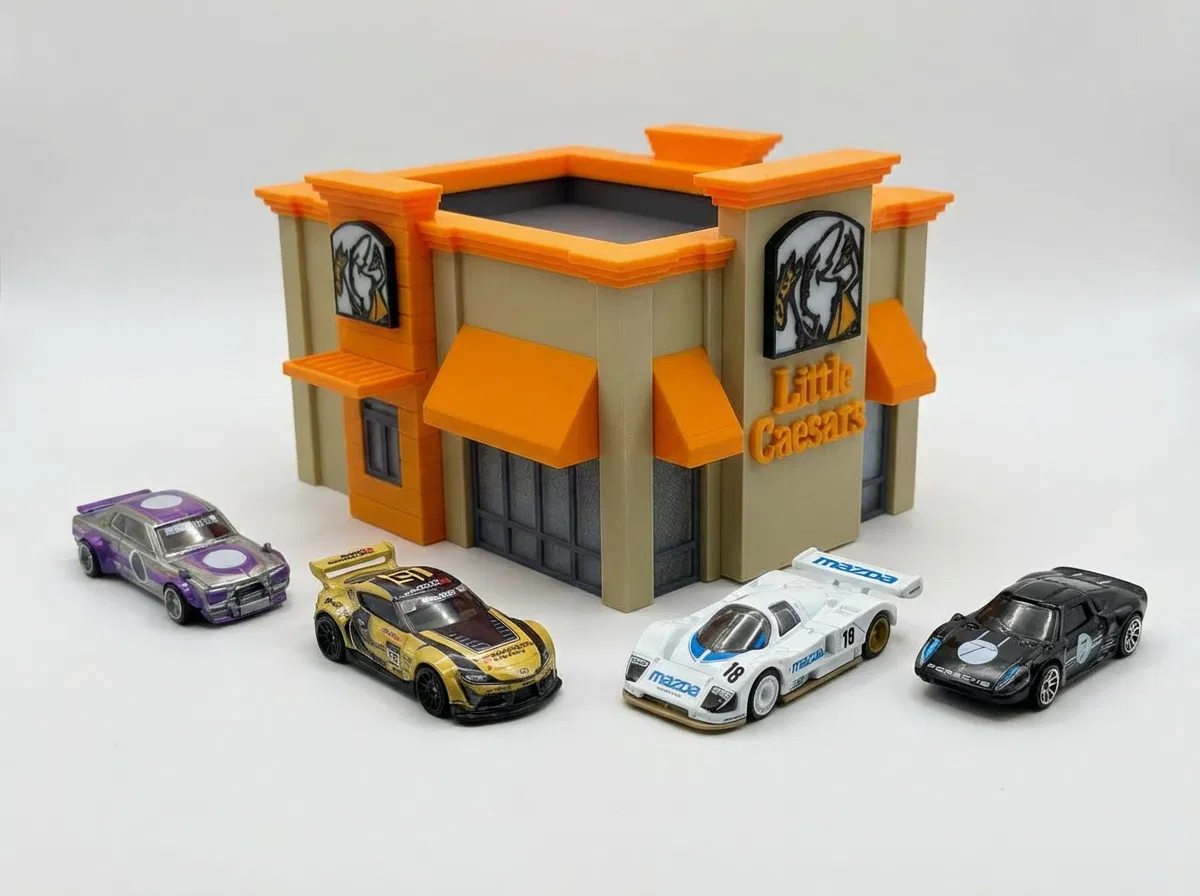 Nếu bạn là một tín đồ của dòng xe mô hình tỉ lệ 1/64 như Hot Wheels hay các dòng xe die-cast khác, thì bộ mô hình cửa hàng Little Caesar này chính là mảnh ghép hoàn hảo cho sa bàn (diorama) của bạn. Với thiết kế mô phỏng chân thực diện mạo của một tiệm pizza Little Caesar nổi tiếng, mô hình này sẽ giúp không gian trưng bày xe của bạn trở nên sống động và có chiều sâu hơn rất nhiều. Các chi tiết từ biển hiệu, mái hiên màu cam đặc trưng cho đến cấu trúc tường đều được tối ưu hóa để người chơi có thể dễ dàng tự in ấn tại nhà.