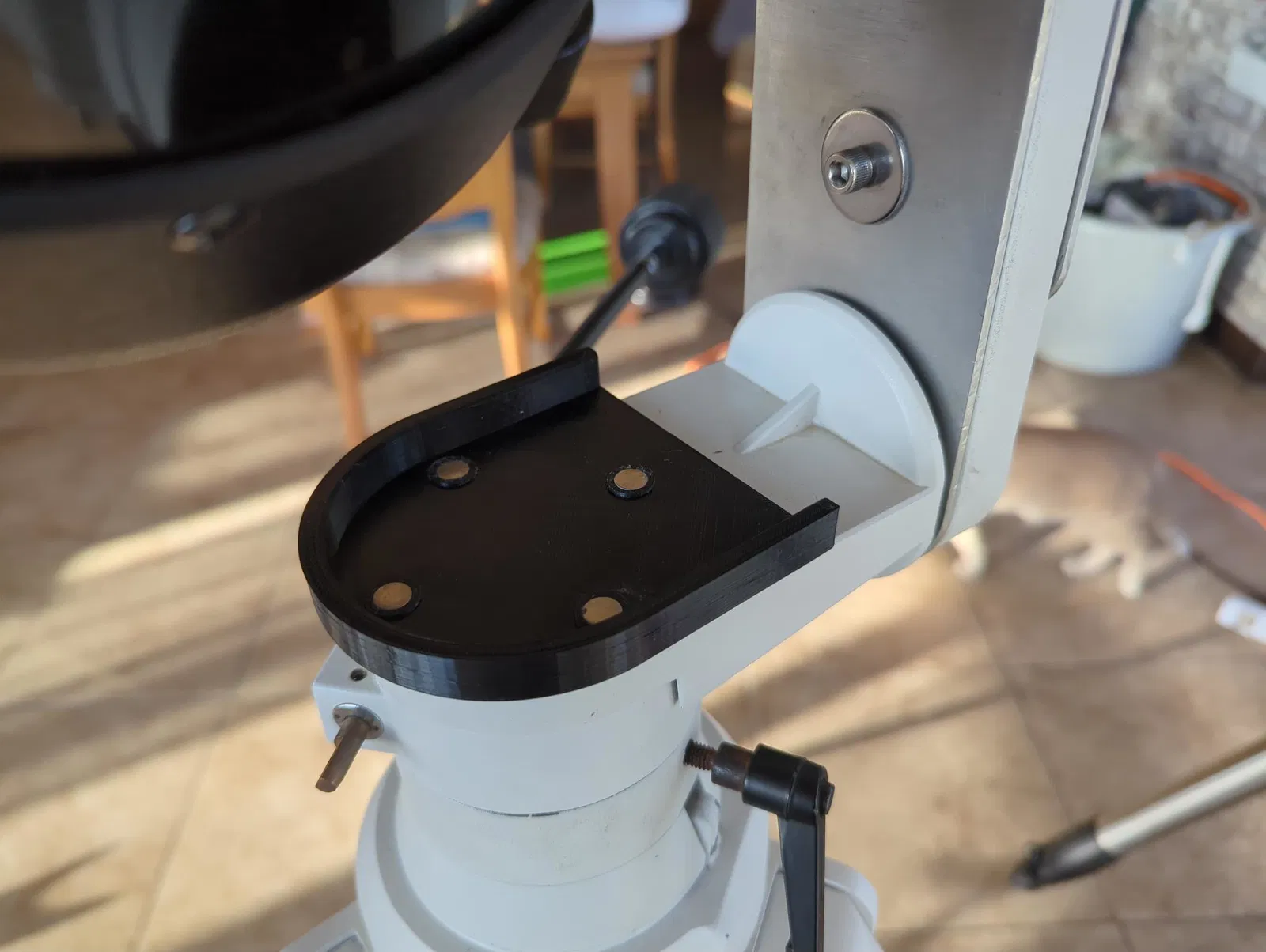 Đây là miếng chắn bảo vệ cho ngàm thiên văn ES Twilight I alt-az. Thiết kế này giúp ngăn ngừa va chạm gây hư hỏng cho ống kính (OTA) của bạn. Miếng chắn được thiết kế để gắn chặt vào vị trí bằng nam châm, tuy nhiên phần nam châm chỉ là phụ kiện vui vẻ và không bắt buộc, miếng chắn vẫn hoạt động tốt mà không cần đến chúng.