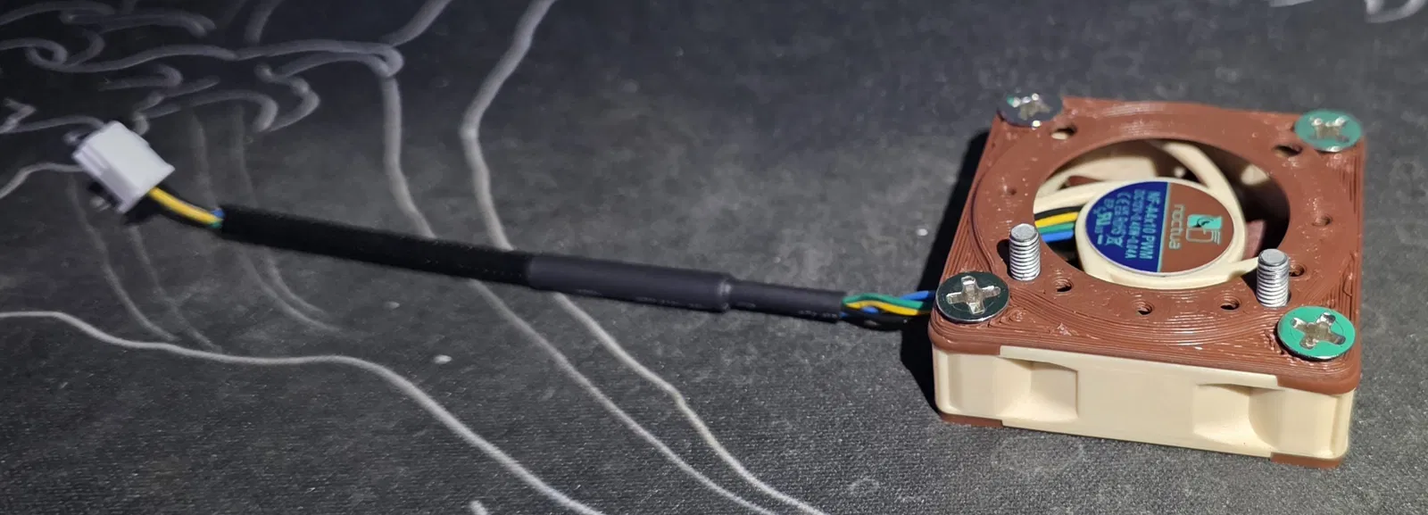 Đây là lần đầu mình đăng bài ở đây, trước đó mình đã có vài mẫu trên MakerWorld nhưng nghĩ là chỗ này sẽ phù hợp hơn cho món đồ này. ### Đây là bộ chuyển đổi quạt low profile từ chuẩn 3010 sang Noctua NF-A4x10. Quạt tản nhiệt trên máy Raise3D E2 ở chỗ làm của mình bị hỏng, và tất nhiên mình muốn thay bằng quạt Noctua. Vì không tìm thấy mẫu nào có sẵn nên mình đã tự thiết kế cái này. Dù thiết kế có thể không tối ưu về khí động học lắm nhưng nó hoạt động rất tốt. Việc lắp đặt khá đơn giản nếu bạn đã quen với đầu nối JST 2.54mm và dây điện nhỏ. Bạn có thể in theo hướng nào mình thích, hướng nào cảm thấy chắc chắn nhất thì làm nhé. File .3mf dành cho X1C (nếu nó hoạt động đúng như vậy). Điểm cộng nếu bạn dùng dây nhựa Prusa x Noctua. Nhớ chọn mua quạt 12v PWM nhé: https://www.noctua.at/en/products/nf-a4x10-pwm. Bạn sẽ cần thay thế đầu cắm JST cho Fan 1 (đầu đùn trái) & Fan 2 (đầu đùn phải).