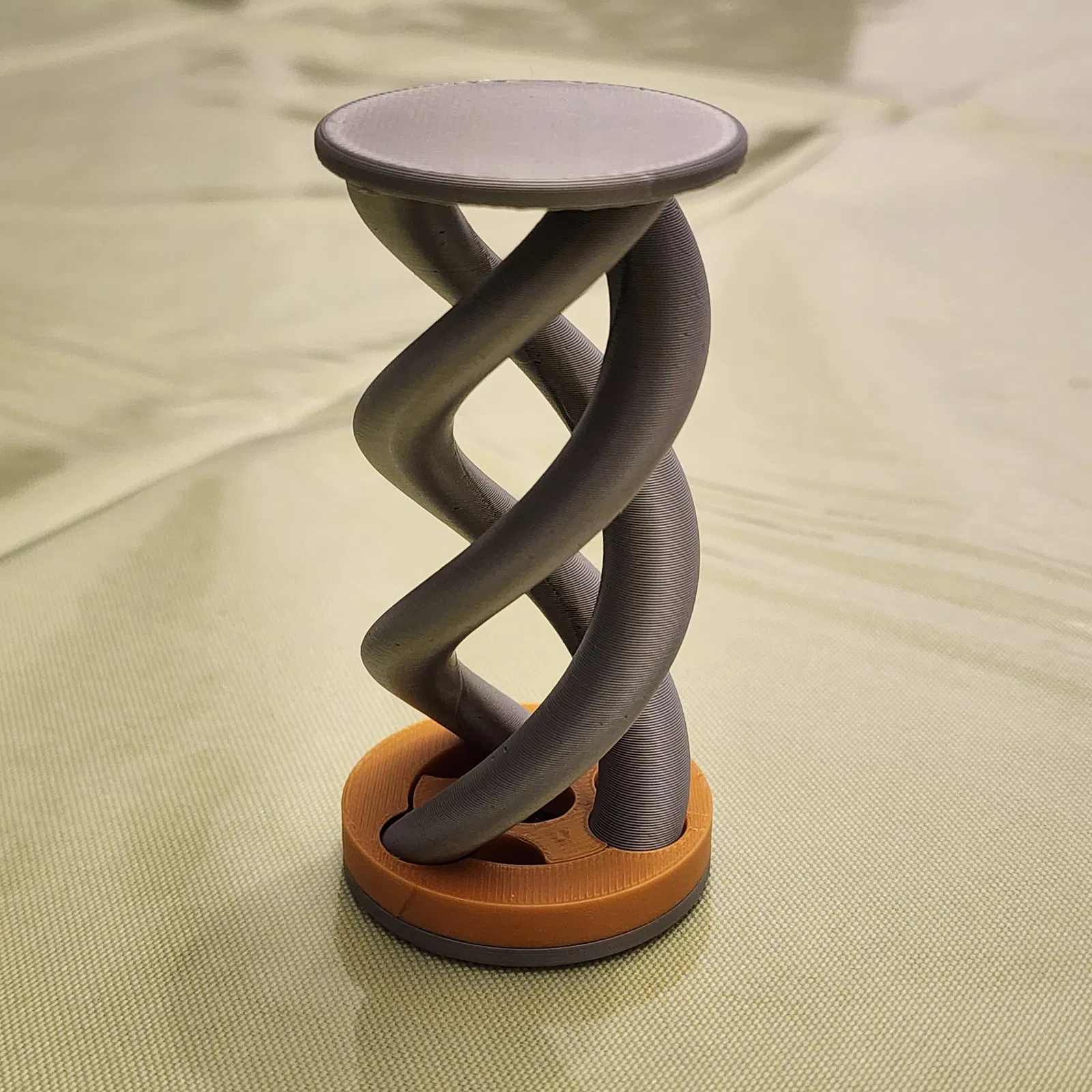 Món đồ chơi cảm giác (fidget) với thiết kế xoắn ốc ba chiều (triple helix). Hai bánh răng được cố định bên trong cấu trúc, trượt lên xuống dọc theo trục xoắn với các tốc độ khác nhau. Bạn có thể tùy chỉnh để chỉ dùng bánh răng bên trong, chỉ bánh răng bên ngoài, hoặc cả hai cùng lúc. Mẫu này được thiết kế dựa trên sự hỗ trợ của một chuyên gia Trị liệu Nghề nghiệp (Occupational Therapist) để giúp học sinh tập trung hơn.