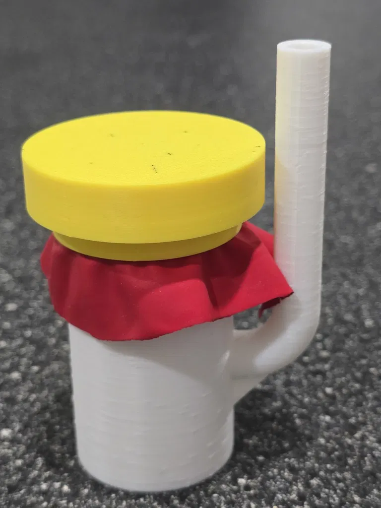 Một chiếc còi hơi siêu nhỏ nhưng cực kỳ vang dội, sử dụng bóng bay làm màng rung. Thiết kế cải tiến có bộ phận hướng âm giúp bảo vệ tai người dùng trong khi vẫn giữ được âm lượng tối đa. Dễ dàng lắp ráp và in 3D không cần support.