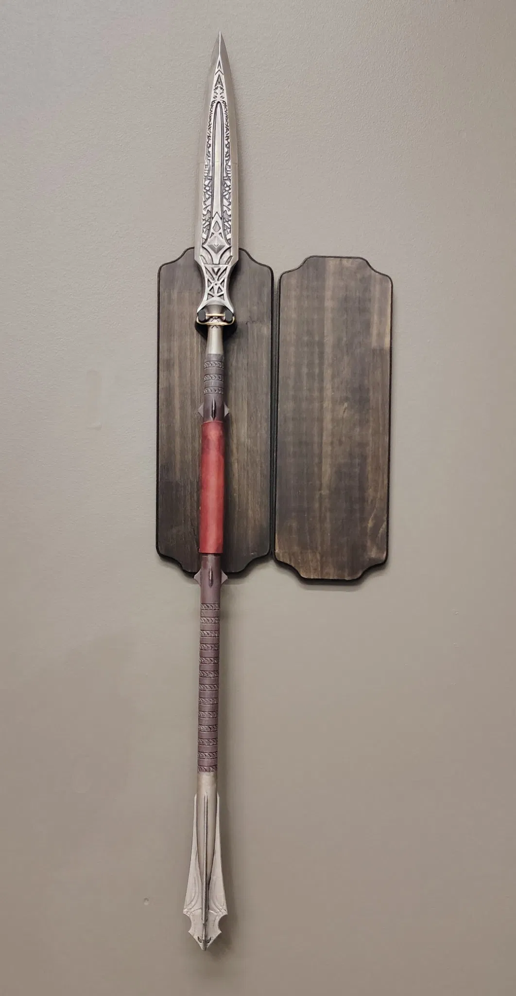Mẫu giá treo tường dành riêng cho mô hình ngọn giáo Draupnir từ God of War. Thiết kế giữ chắc ngọn giáo ngay dưới lưỡi, hỗ trợ cố định bằng dây thun và dễ dàng lắp đặt lên bảng treo bằng ốc vít gỗ tiêu chuẩn.