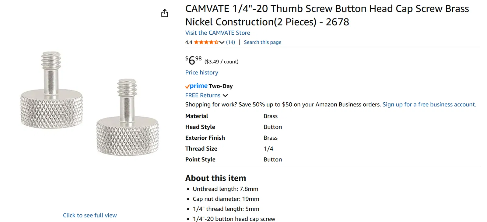 Bạn sẽ cần mua thêm một con ốc vặn máy ảnh 1/4-20 (như hình) để gắn LP1 vào giá (hoặc tháo từ cái chân máy ảnh đi kèm máy laser ra).