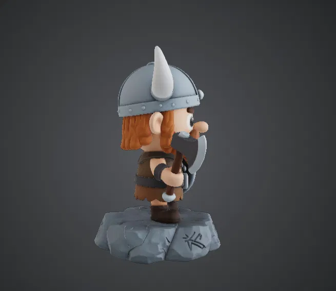 Khám phá chiến binh Viking tí hon cực đáng yêu với phong cách hoạt hình. Mô hình có đầy đủ chi tiết như rìu chiến, khiên tròn và đế đá cổ ngữ, rất thích hợp để sưu tầm và in 3D cho góc làm việc của bạn thêm sinh động.