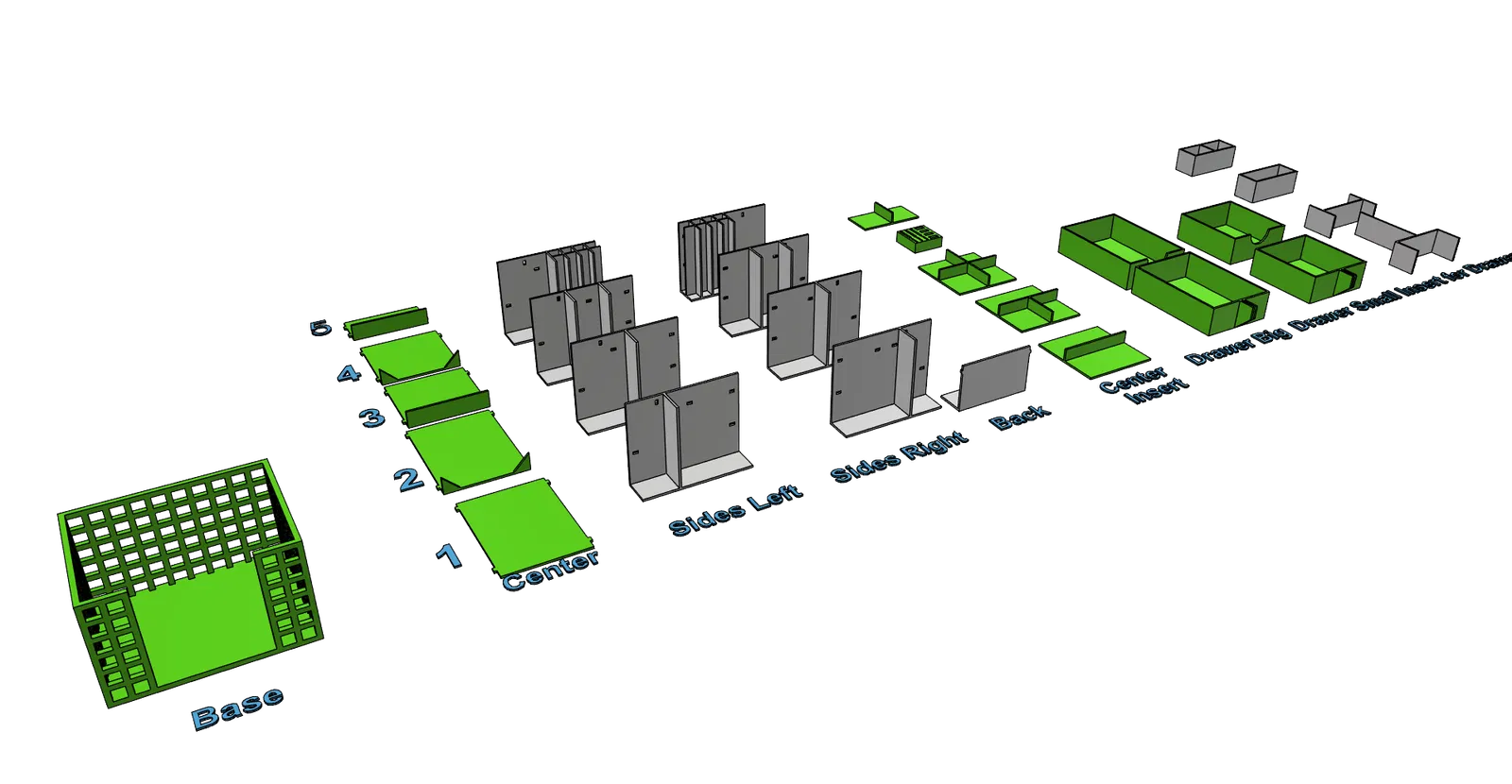 Cách lắp ráp: Đầu tiên bạn hãy in các mảnh mặt bên, mặt lưng và phần giữa, sau đó lắp tất cả vào phần đế (base).