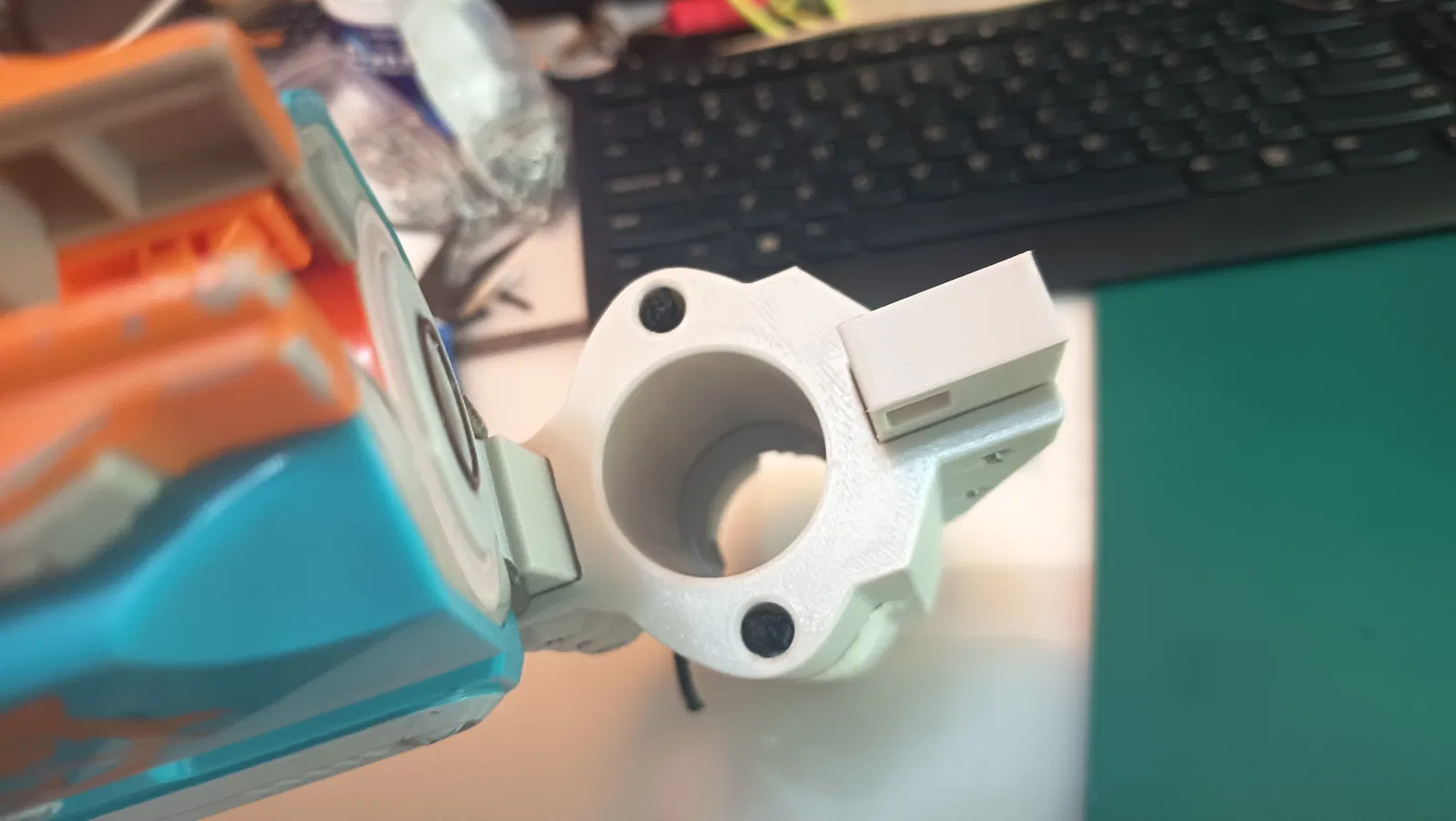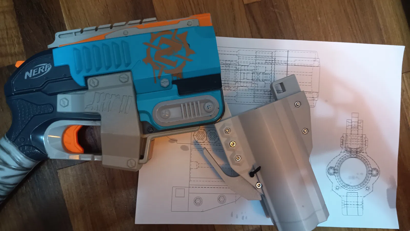 Anh em cứ thoải mái tùy chỉnh file thiết kế để giảm bớt phần cứng nếu muốn... Thay thế ốc vít bằng chốt cũng không quá khó khăn, nhưng có thể sẽ hơi bất tiện nếu muốn điều chỉnh phần đầu blaster.