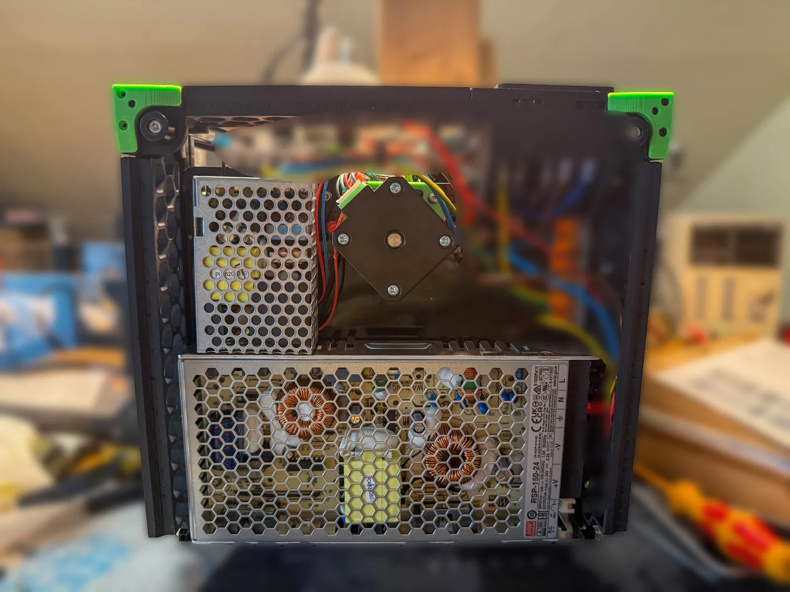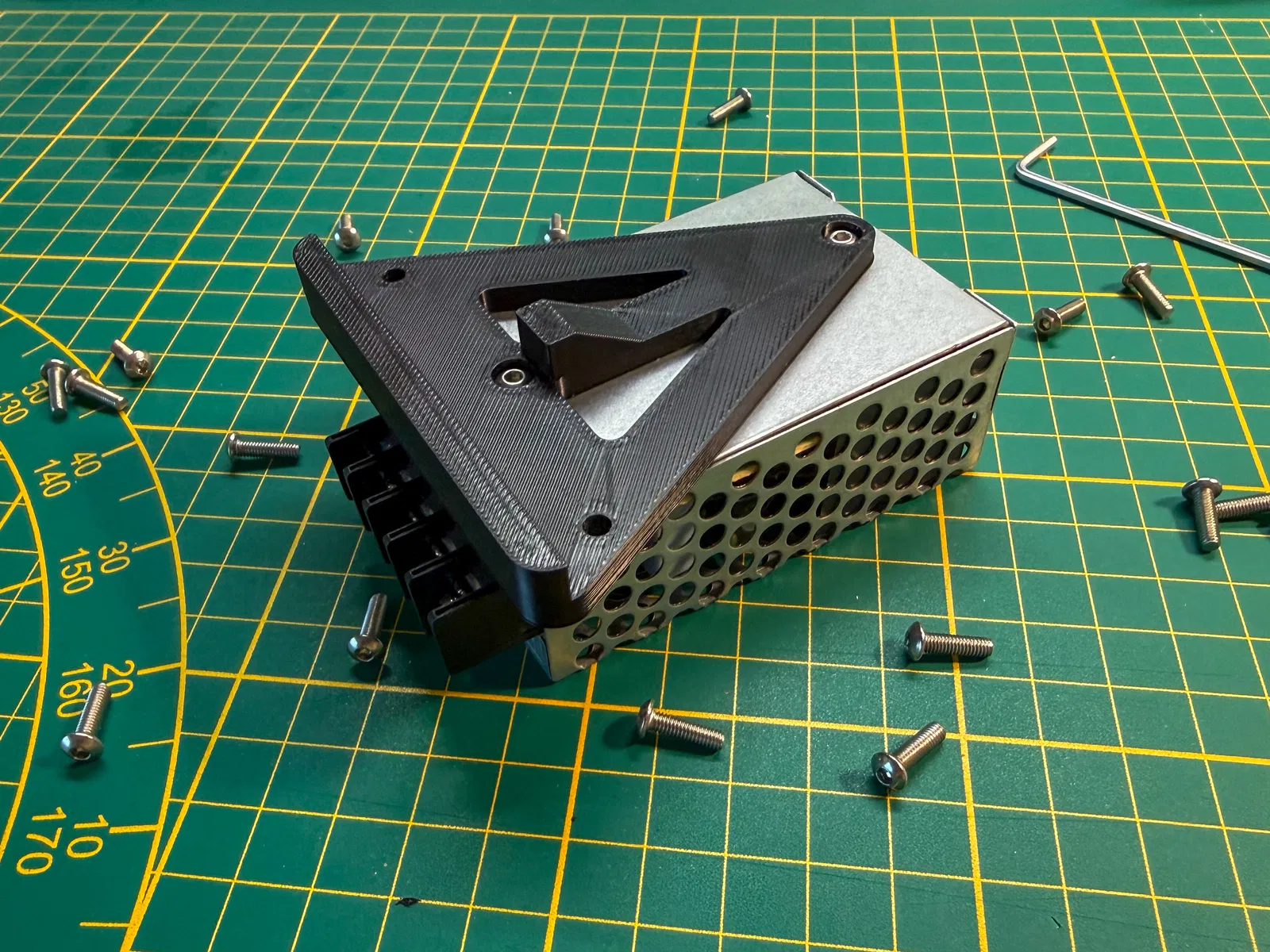 Phần gá này bao quanh thanh nhôm 1515 để đỡ bộ nguồn PSU. Mình thấy nó rất chắc chắn, không hề bị võng hay lỏng lẻo chút nào.