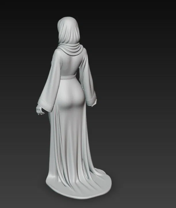 Sự chi tiết của mô hình nằm ở những nếp gấp mềm mại của bộ trang phục và chiếc khăn trùm đầu được khắc họa rất chân thực, tạo cảm giác sống động như thật. Với tư thế đứng thẳng, phong thái uy nghiêm nhưng vẫn toát lên sự dịu dàng, tác phẩm này chắc chắn sẽ gây ấn tượng mạnh với bất kỳ ai yêu thích nghệ thuật điêu khắc nhân vật. Bạn có thể sử dụng mô hình này như một vật trang trí nội thất mang hơi hướng văn hóa, hoặc dùng làm tư liệu cho các dự án thiết kế game, phim ảnh hoạt hình 3D.