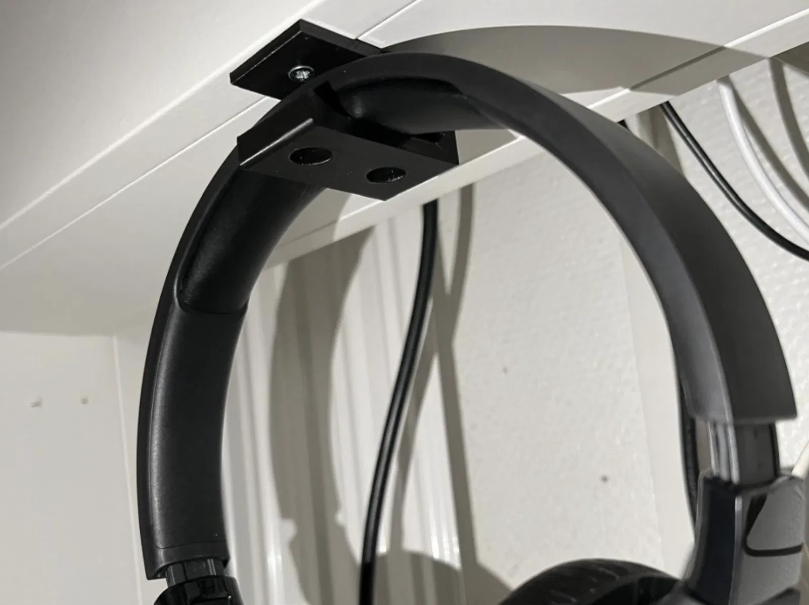 Việc lắp đặt cũng rất trực quan, bạn chỉ cần một vài chiếc vít nhỏ để gắn móc cố định vào bàn. Bạn có thể treo tai nghe ngay khi in xong, giúp tiết kiệm diện tích và tạo điểm nhấn gọn gàng cho khu vực máy tính. Đây thực sự là một phụ kiện không thể thiếu cho các game thủ, editor hoặc dân văn phòng thường xuyên sử dụng headset.