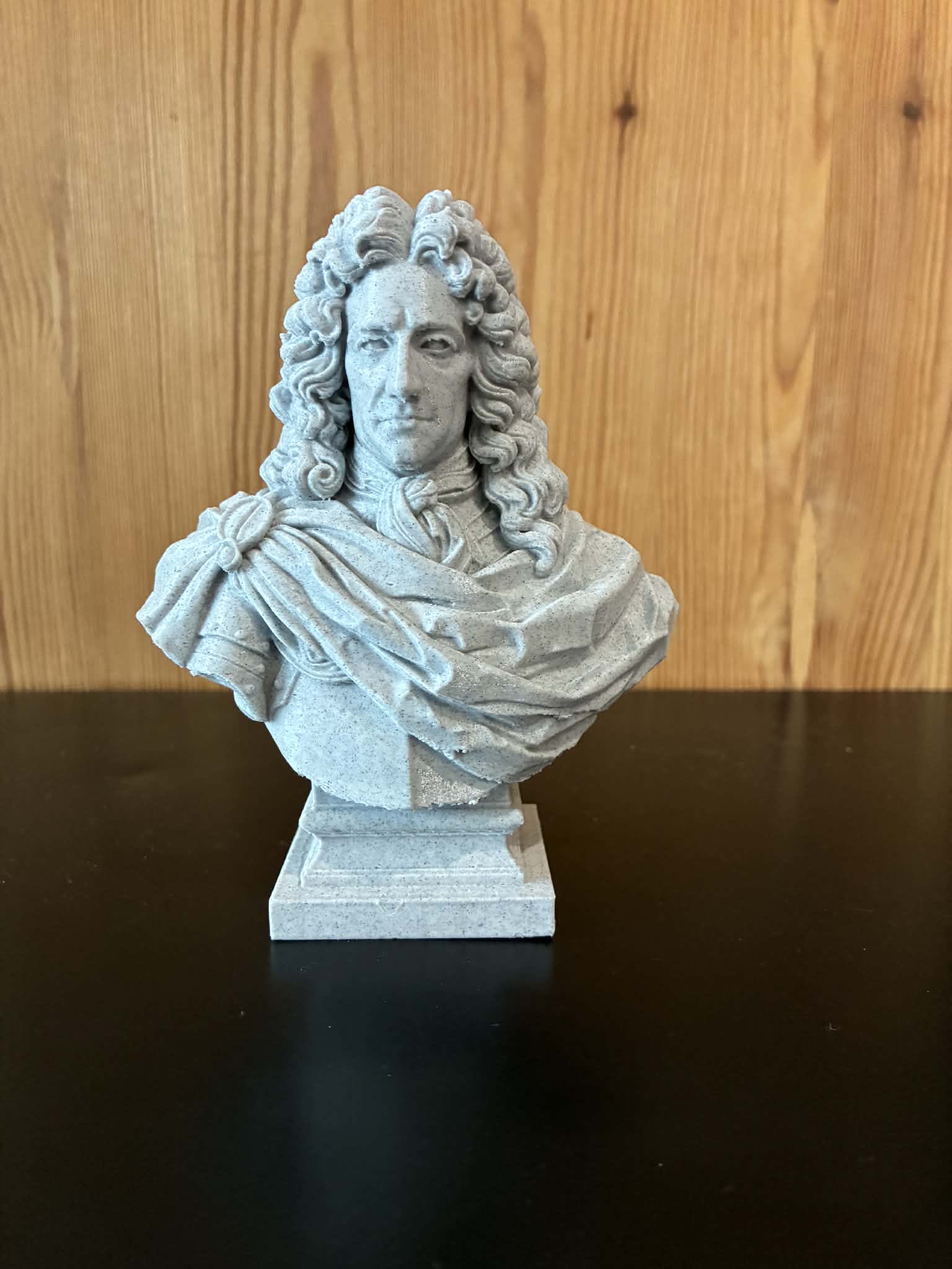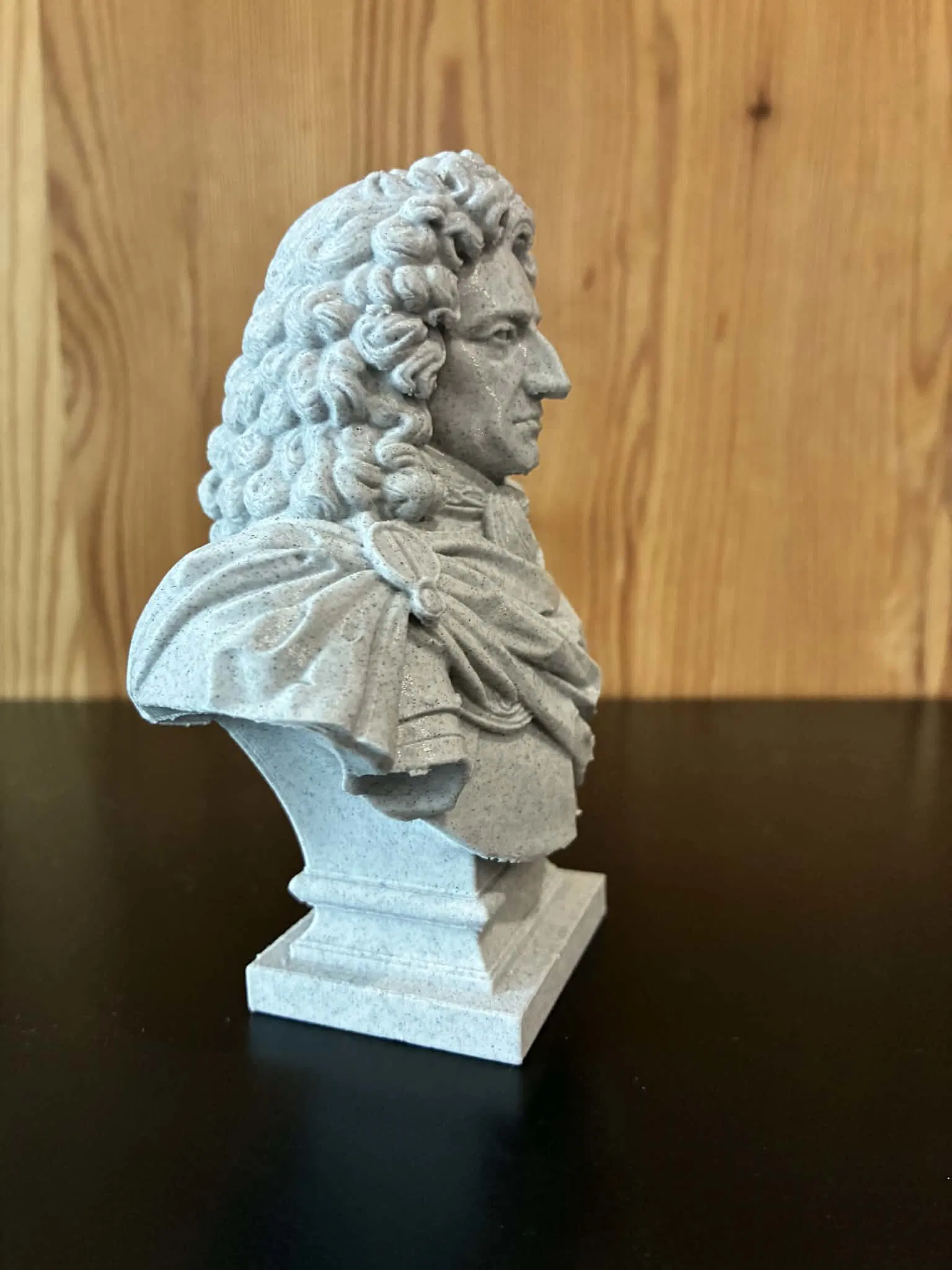 Tượng bán thân William III xứ Orange, nhà lãnh đạo lịch sử thế kỷ 17. Tác phẩm điêu khắc chi tiết tái hiện chân thực khuôn mặt và trang phục quý tộc, phù hợp để in 3D trưng bày cho những người yêu thích lịch sử châu Âu.