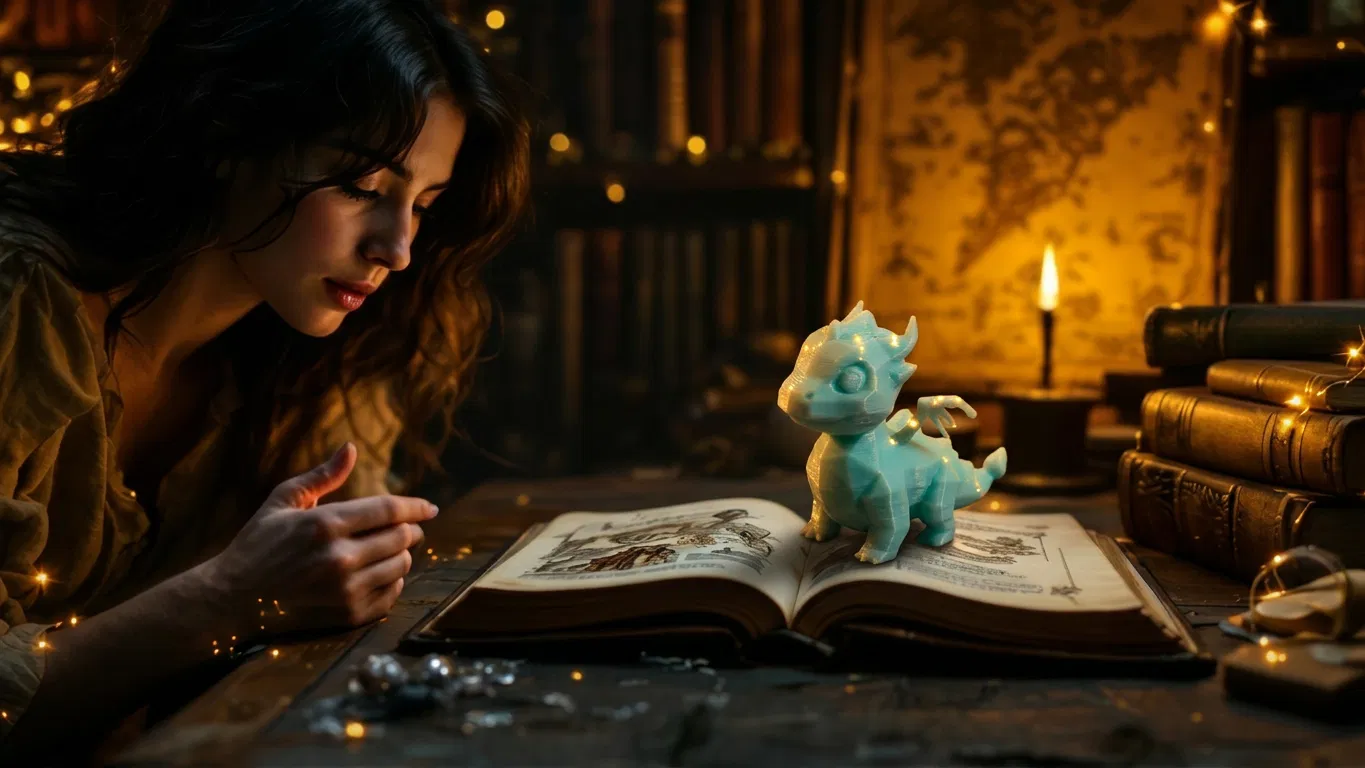 Mô hình Rồng Bỏ Túi (Pocket Dragon Figurine). Đây là một mô hình rồng thu nhỏ cực kỳ đáng yêu với tư thế đứng bốn chân đầy kiêu hãnh, nổi bật với cặp sừng cong, đuôi có gai nhọn và những đường nét cánh tinh xảo dọc hai bên thân. Khi in bằng nhựa filament trong suốt, chú rồng nhỏ bé này tạo ra hiệu ứng chuyển màu từ vàng sang xanh dương tuyệt đẹp, trông cực lung linh khi có ánh sáng xuyên qua bề mặt mịn màng và nhỏ gọn của nó. Món đồ này rất hợp cho các bạn chơi board game cần một món phụ kiện trang trí độc đáo, hoặc cho những ai muốn có một "người bảo vệ" nhỏ xíu phát sáng đặt trên bàn làm việc hay làm móc khóa.