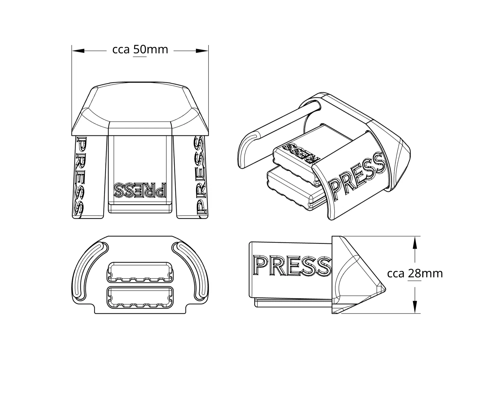 Phần nắp được thiết kế tối ưu với ngàm khóa dạng bấm (có ghi chữ 'PRESS' trên bề mặt) giúp việc lắp đặt trở nên dễ dàng mà không cần dùng đến ốc vít phức tạp. Bạn chỉ cần in ra, làm sạch sơ bộ rồi ấn nhẹ để ngàm khớp hoàn toàn vào rãnh của thanh giá nóc HAKR. Đây là một món phụ kiện nhỏ nhưng cực kỳ tiện dụng, giúp bảo vệ các cạnh sắc của thanh nhôm, tăng tính an toàn và thẩm mỹ cho ngoại thất chiếc xe của bạn.