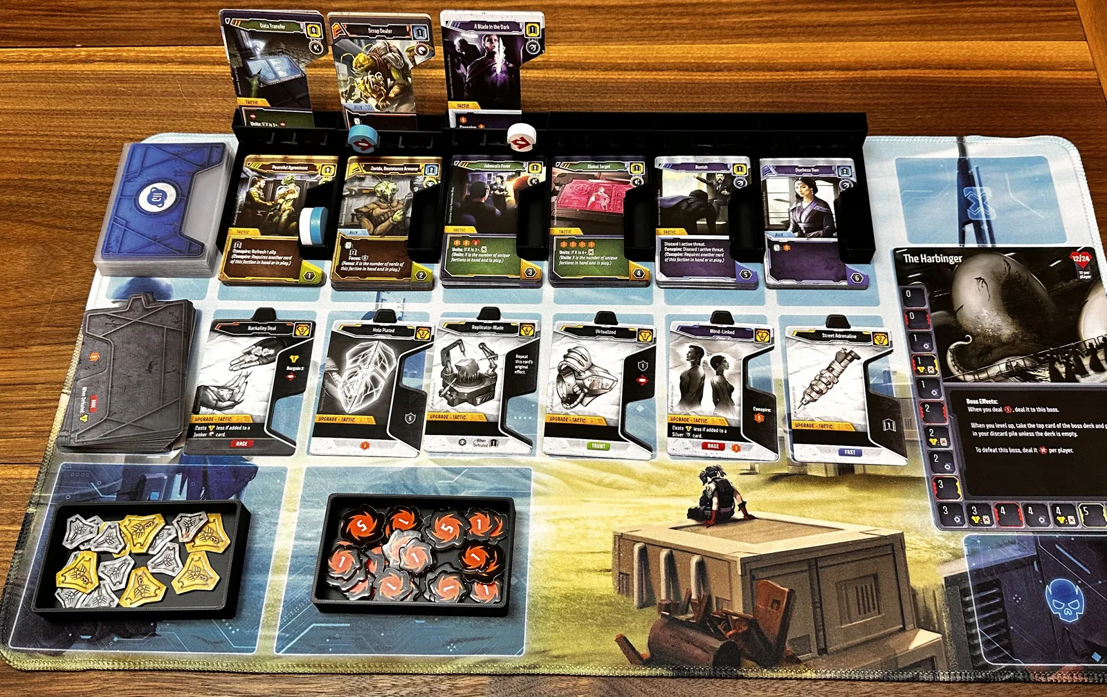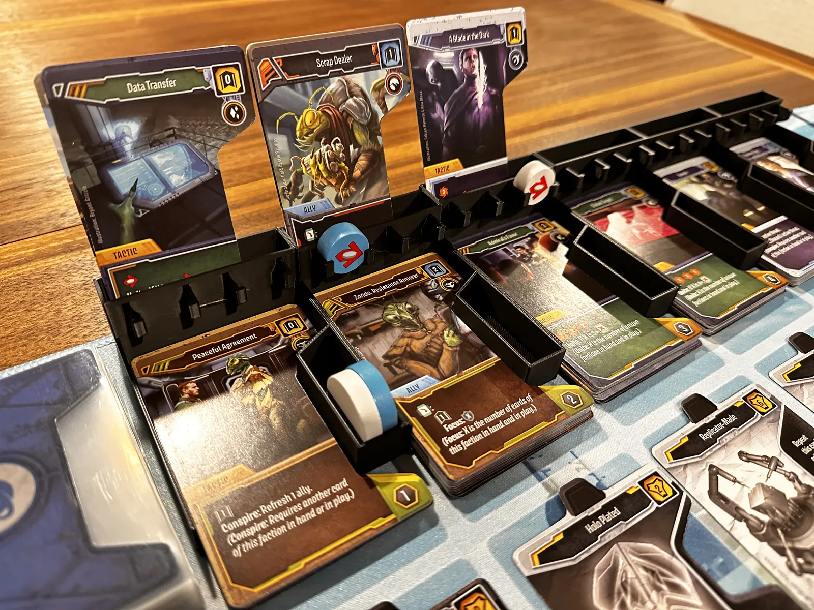 Dạo gần đây mình đang rất mê trò board game Unstoppable. Tuy nhiên, có một điểm hơi bất tiện là ở giai đoạn draft. Bạn phải rút 3 lá bài, chọn 1 lá rồi đặt 2 lá còn lại xuống đáy chồng bài. Do thảm chơi khá nhỏ gọn nên việc nhét bài xuống dưới mỗi lần như vậy thật sự rất phiền. Mẫu in này giải quyết được vài vấn đề sau: - Rút bài và bỏ bài dễ dàng vào phần dựng đứng. - Lưu trữ được cả token dùng cho đĩa cấp độ người chơi và lấy ra cũng rất tiện. - Giải phóng không gian trên thảm chơi, tránh xa hàng thẻ nâng cấp (giúp việc rút bài ở cả hai khu vực dễ dàng hơn). Mình đã in 6 cái này với chiều cao lớp in 0.20mm bằng máy Bambu P1S. Không cần hỗ trợ (supports). Chúng hoàn toàn vừa vặn trong hộp (xem hình). Nếu nhận được nhiều sự quan tâm, có thể mình sẽ cải tiến thêm để chúng có thể khóa lại với nhau, gắn thêm nam châm, v.v.