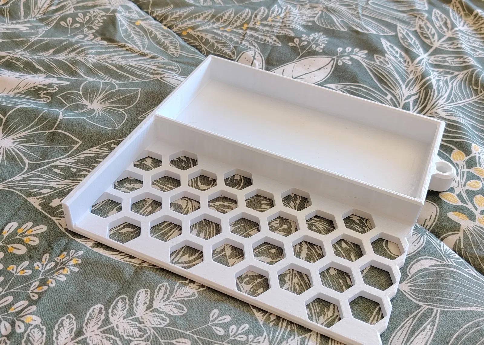 - Support: Tối thiểu. Họa tiết tổ ong được thiết kế để in bridge dễ dàng trên hầu hết các máy in được canh chỉnh tốt. Chỉ cần hỗ trợ (support) cho phần "Glasses dock".