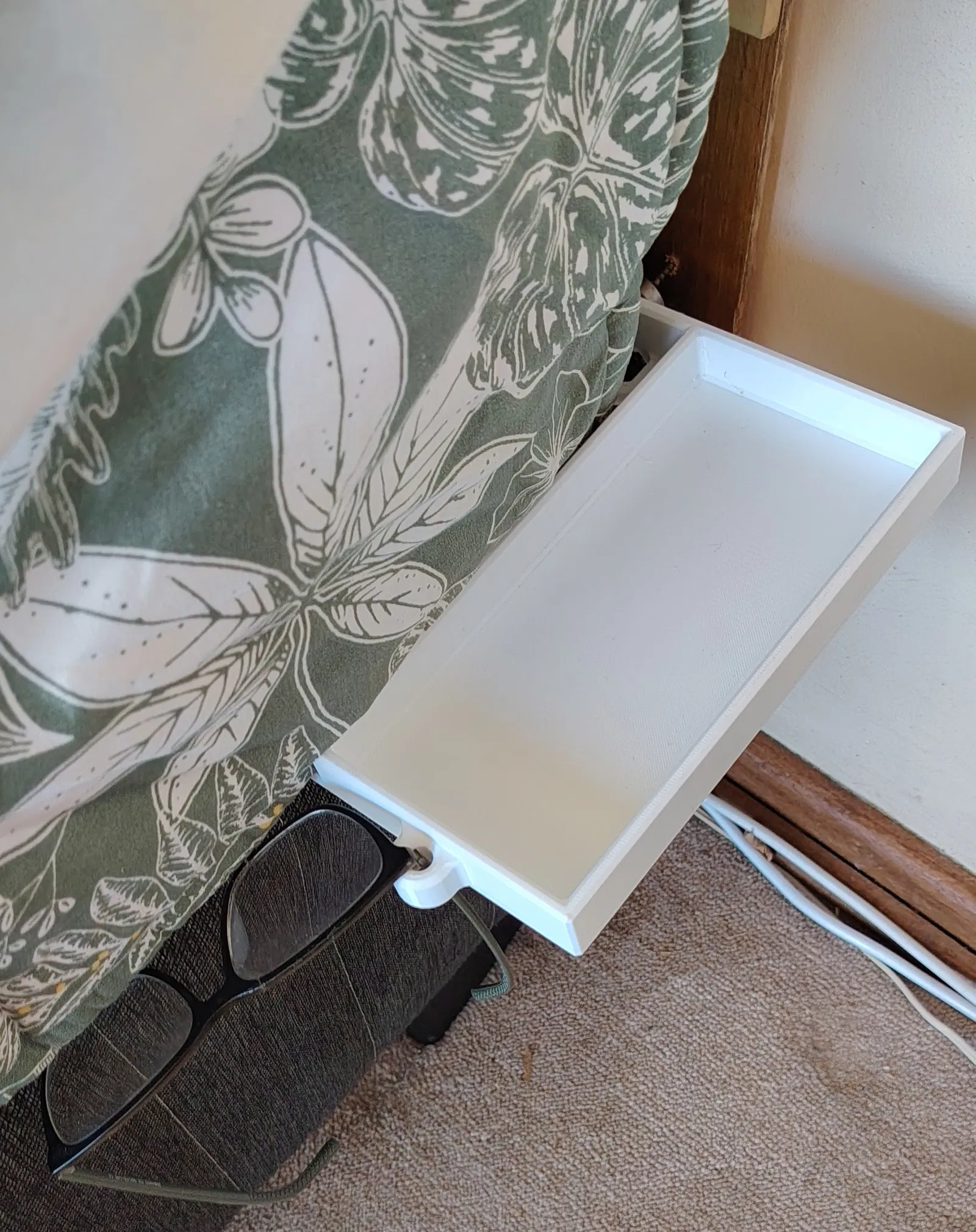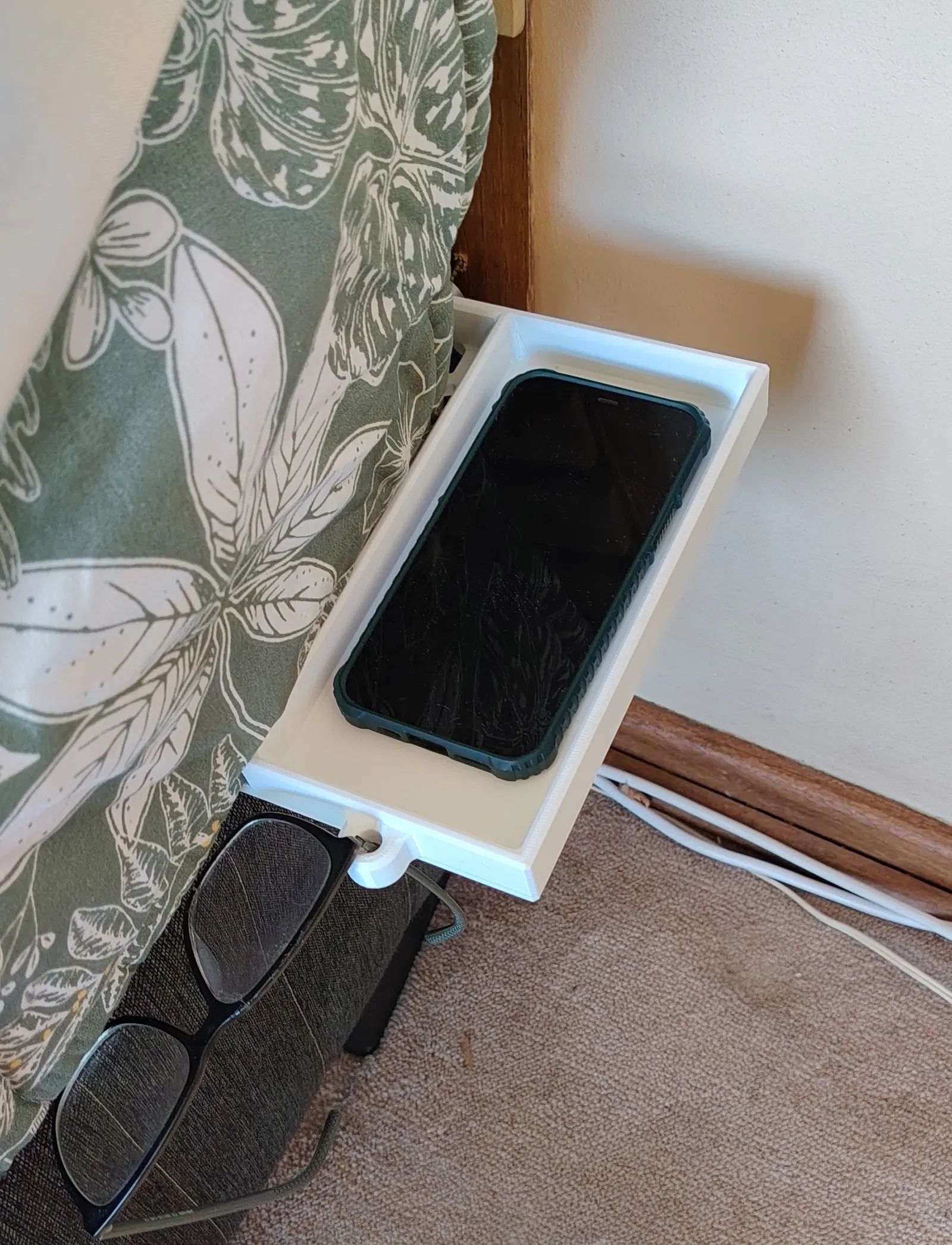 Nâng cấp không gian đầu giường với kệ để điện thoại và kính mắt cực kỳ chắc chắn. Thiết kế tối giản, hỗ trợ in 3D tối ưu cho PETG, đi kèm hai phiên bản trái và phải tiện lợi.