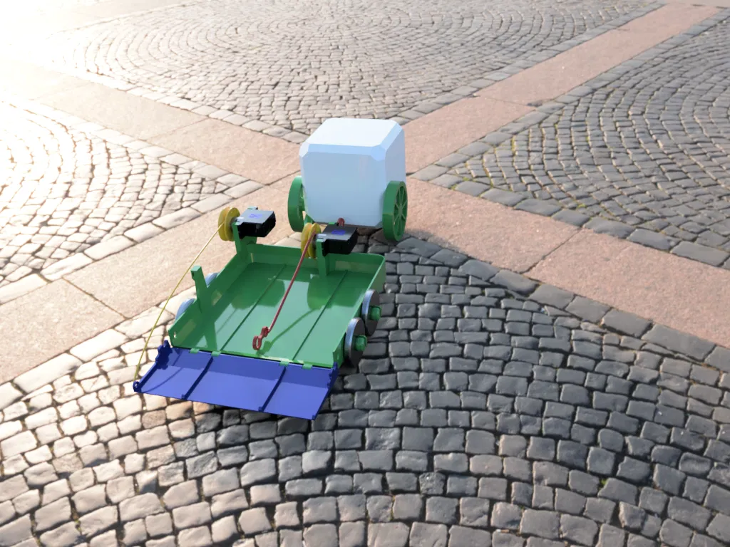 Một chiếc xe moóc nhỏ sử dụng servo để tự động hóa cầu dẫn tải và móc kéo để vận chuyển các robot khác. Thiết kế đi kèm với hướng dẫn lắp ráp chi tiết, sử dụng cơ chế tời thủ công hoặc servo cho trải nghiệm điều khiển từ xa linh hoạt.