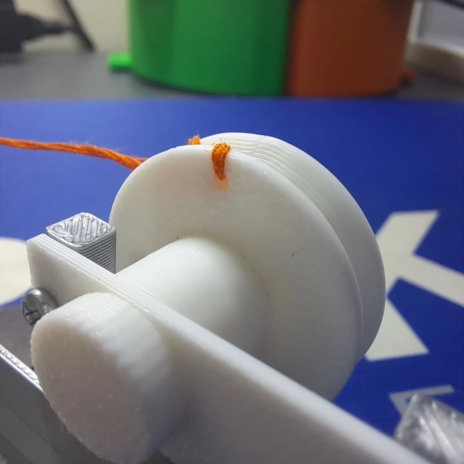 Sau đó đẩy con lăn dây vào servo. Vì tôi không có linh kiện thực tế, lỗ trên con lăn dây chắc chắn sẽ cần điều chỉnh thêm một chút.