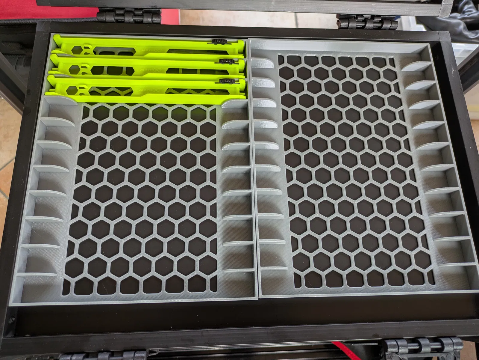 Giải pháp hoàn hảo giúp bạn sắp xếp các bộ trục quấn dây câu vào thùng ngồi một cách ngăn nắp. Thiết kế tối ưu cho loại trục Matrix 180mm, mỗi khay chứa được 11 cái, giúp bạn tiết kiệm diện tích và dễ dàng lấy đồ khi đi câu.