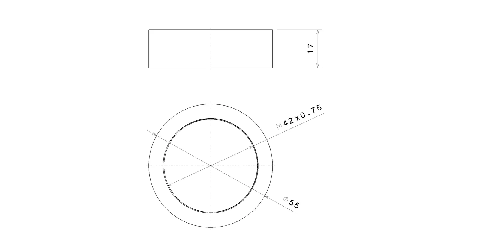 - Thông số kỹ thuật: Ren trong M42x0.75, đường kính ngoài 55mm và chiều cao 17mm, phù hợp với hầu hết các thiết bị chuẩn T2 tiêu chuẩn.