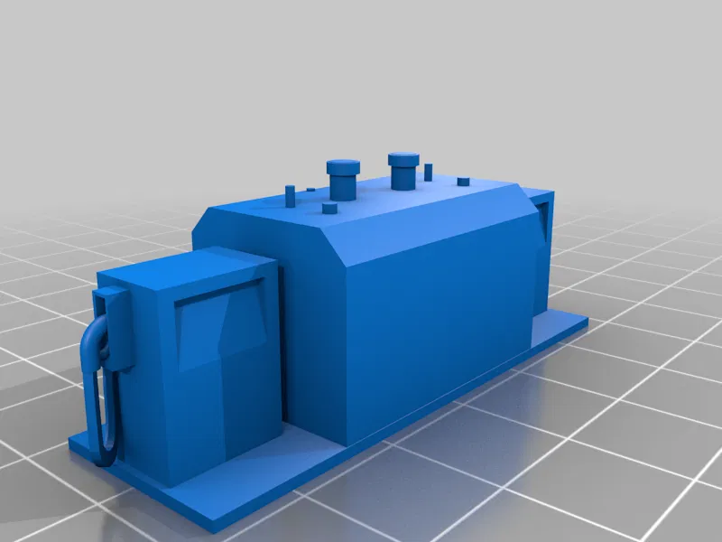 Mô hình trạm tiếp nhiên liệu với bồn chứa đặt trên mặt đất ở tỉ lệ HO (1:87), phù hợp cho các mô hình sa bàn xe cộ. Sản phẩm đi kèm nhiều tùy chọn lắp ráp linh hoạt, dễ dàng in ấn với nhựa PLA cho độ chi tiết cao.