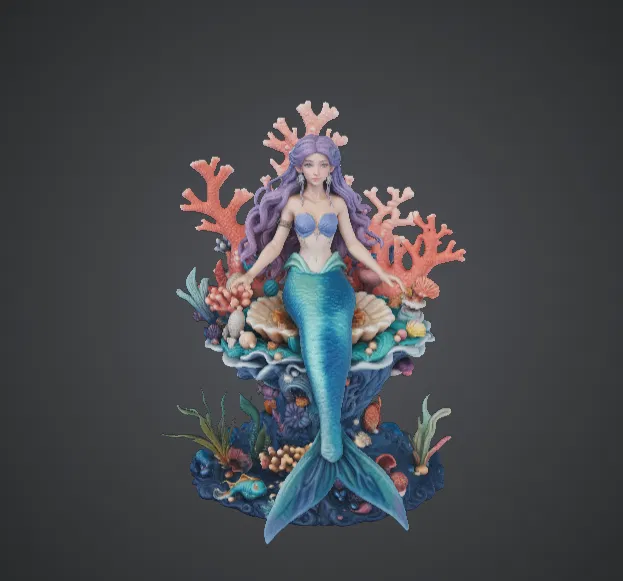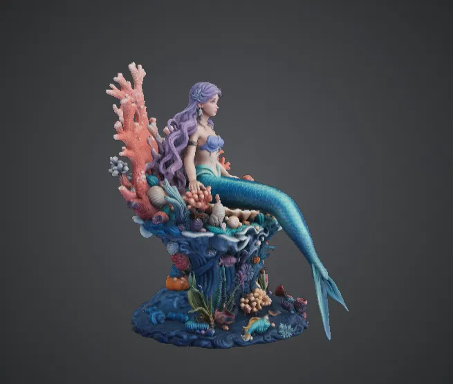 Tượng Nàng Tiên Cá Rạn San Hô này lột tả vẻ đẹp và sự huyền bí của đại dương qua một tác phẩm điêu khắc giả tưởng tuyệt đẹp. Ngồi một cách duyên dáng giữa các cấu trúc san hô, vỏ sò và hệ sinh thái dưới đáy biển đầy màu sắc, nàng tiên cá hiện lên như một người bảo vệ rạn san hô. Mái tóc bồng bềnh và chiếc đuôi thanh thoát tạo nên cảm giác chuyển động sống động, trong khi các chi tiết san hô và sinh vật biển xung quanh tạo thành một môi trường đại dương phong phú. Bức tượng sở hữu các đường nét chi tiết sắc sảo trên các cấu trúc san hô, thực vật biển và vỏ sò, khiến toàn bộ phần đế trông như một hệ sinh thái đại dương thu nhỏ. Biểu cảm bình thản cùng tư thế tinh tế của nàng tiên cá mang lại cảm giác thanh bình và đầy phép thuật cho tác phẩm này.