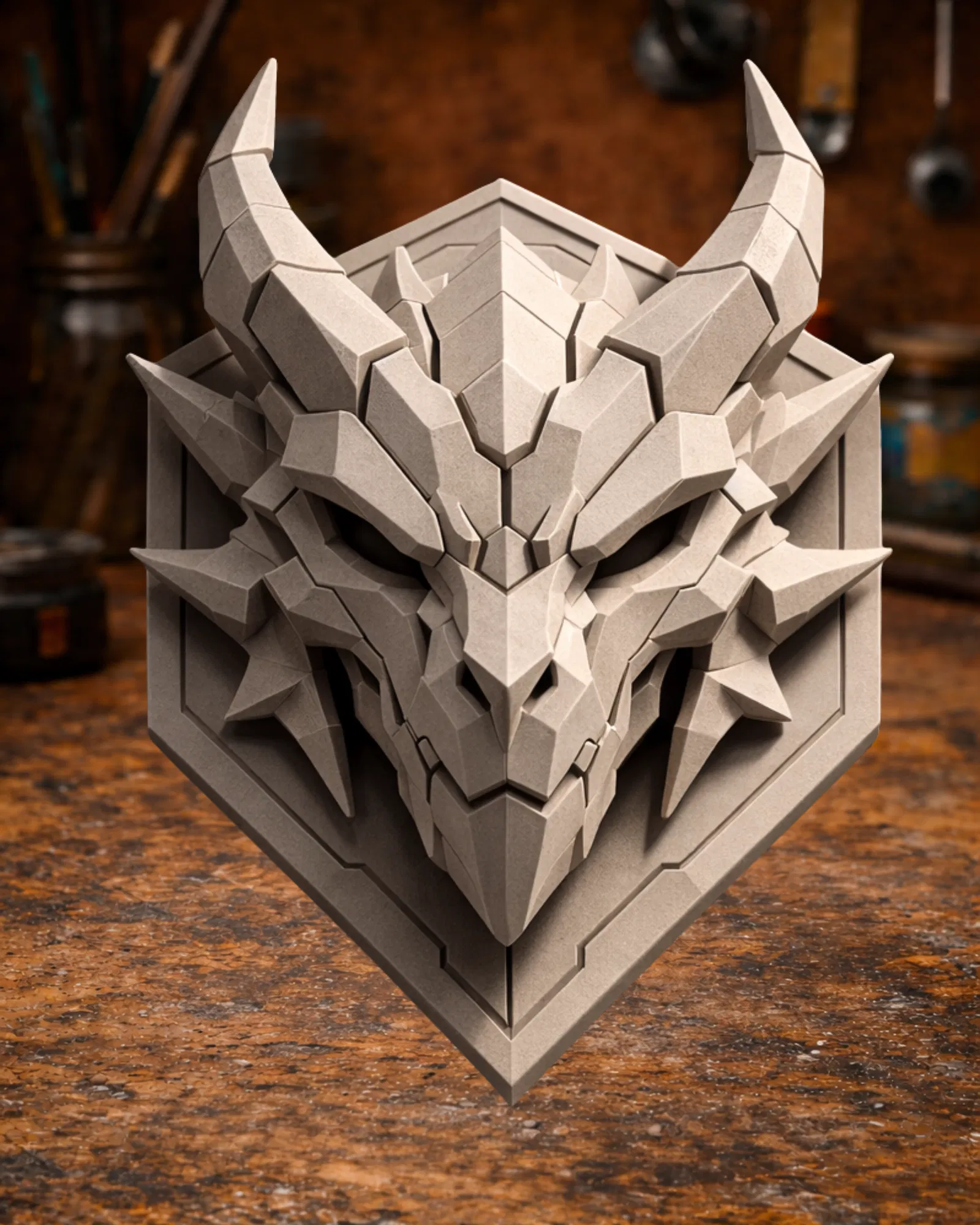 - Hoàn thiện: Sau khi in xong, bạn có thể sơn phủ lớp sơn nhám hoặc sơn màu kim loại để làm nổi bật các góc cạnh của đầu rồng, tạo nên hiệu ứng thị giác như những tác phẩm điêu khắc thật thụ.