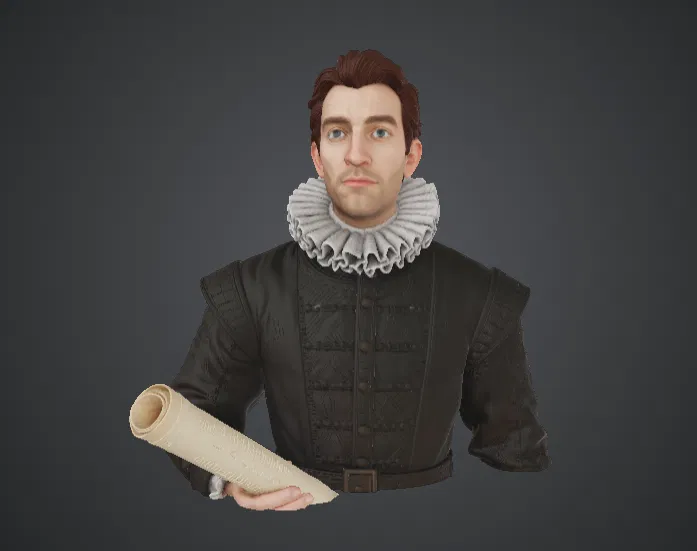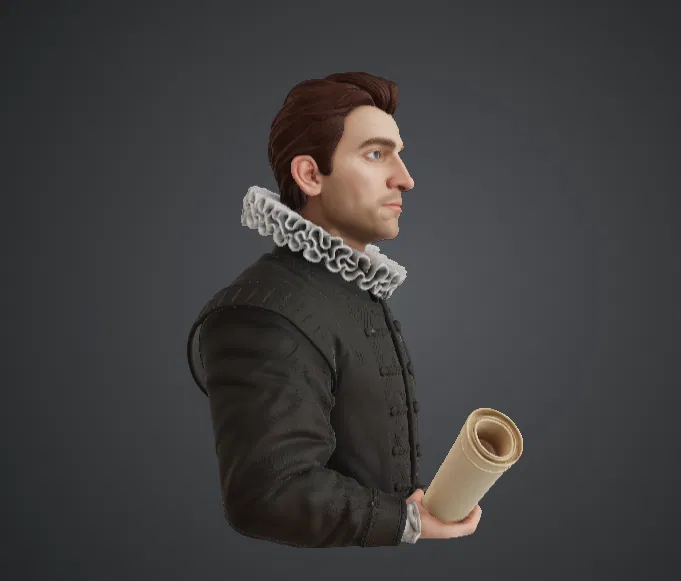 Bức tượng có kết cấu trang phục được chạm khắc tinh xảo, đường nét khuôn mặt chân thực cùng thiết kế lịch sử thanh tao lấy cảm hứng từ các bức chân dung thời Phục Hưng cổ điển. Sự kết hợp giữa y phục học giả và cuộn giấy tạo thêm yếu tố tự sự, gợi lên hình ảnh của một triết gia, nhà khoa học hoặc nhà thám hiểm đang chia sẻ những tư tưởng mới với nhân loại.