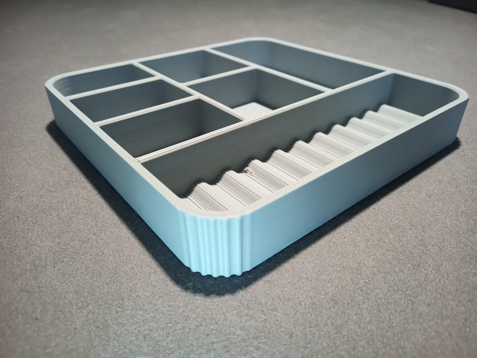 Bản remix từ khay Build Tray của STEELE DESIGN. Mình đã làm mượt phần đáy và cạnh bằng Tinkercad để khay trông tinh tế hơn và quan trọng là giúp giảm đáng kể thời gian in ấn. Rất phù hợp để sắp xếp đồ đạc gọn gàng hơn.