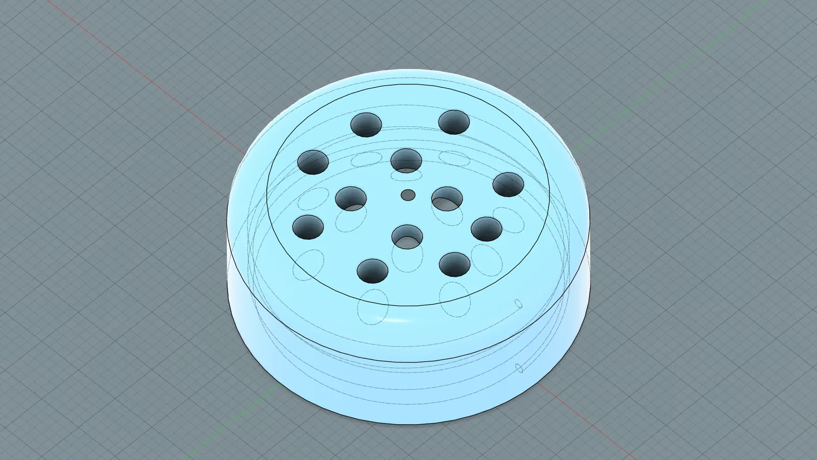 Nên đặt nằm phẳng với mặt có lỗ hướng lên trên. Cách này giúp các lỗ in sạch đẹp hơn, không cần dùng support bên trong và giúp nắp vặn vừa khít hơn.