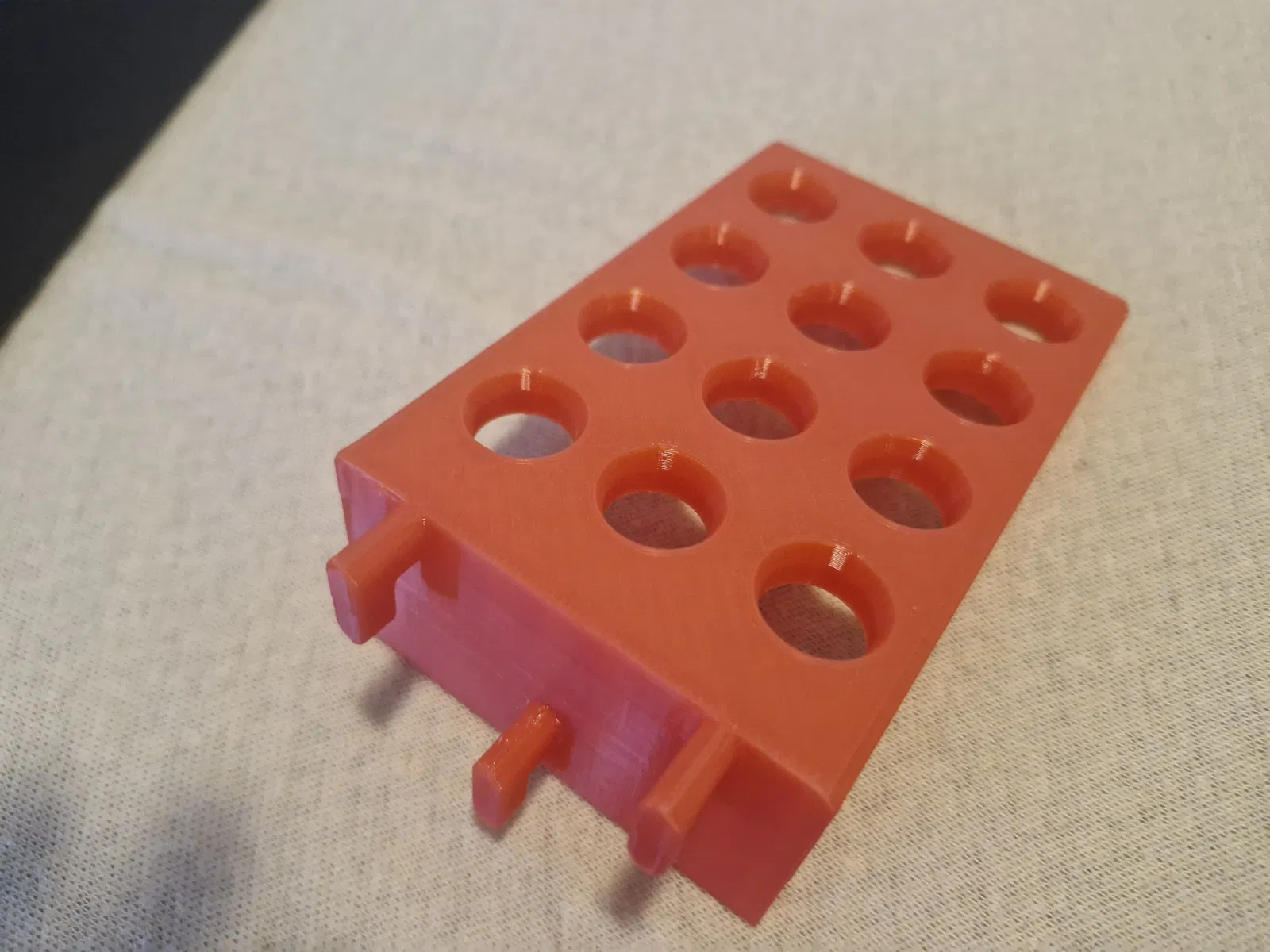 Bạn đang tìm cách sắp xếp lại bộ tua vít của mình trên bảng Skadis? Hãy thử ngay mẫu giá treo 3D này với thiết kế 12 lỗ, đường kính 13mm cực kỳ chắc chắn. Sản phẩm giúp bạn lưu trữ các dụng cụ cầm tay một cách gọn gàng, tiết kiệm không gian và dễ dàng lấy sử dụng mỗi khi cần. Được thiết kế chuyên biệt để lắp vừa vặn vào bảng Skadis, giá treo có khối lượng in nhẹ, chỉ tốn khoảng 25g nhựa và hơn 1 giờ in. Đây là giải pháp hoàn hảo cho góc làm việc của các anh em đam mê kỹ thuật, vừa tăng tính thẩm mỹ cho căn phòng, vừa giữ cho bàn làm việc luôn ngăn nắp, khoa học hơn hẳn.
