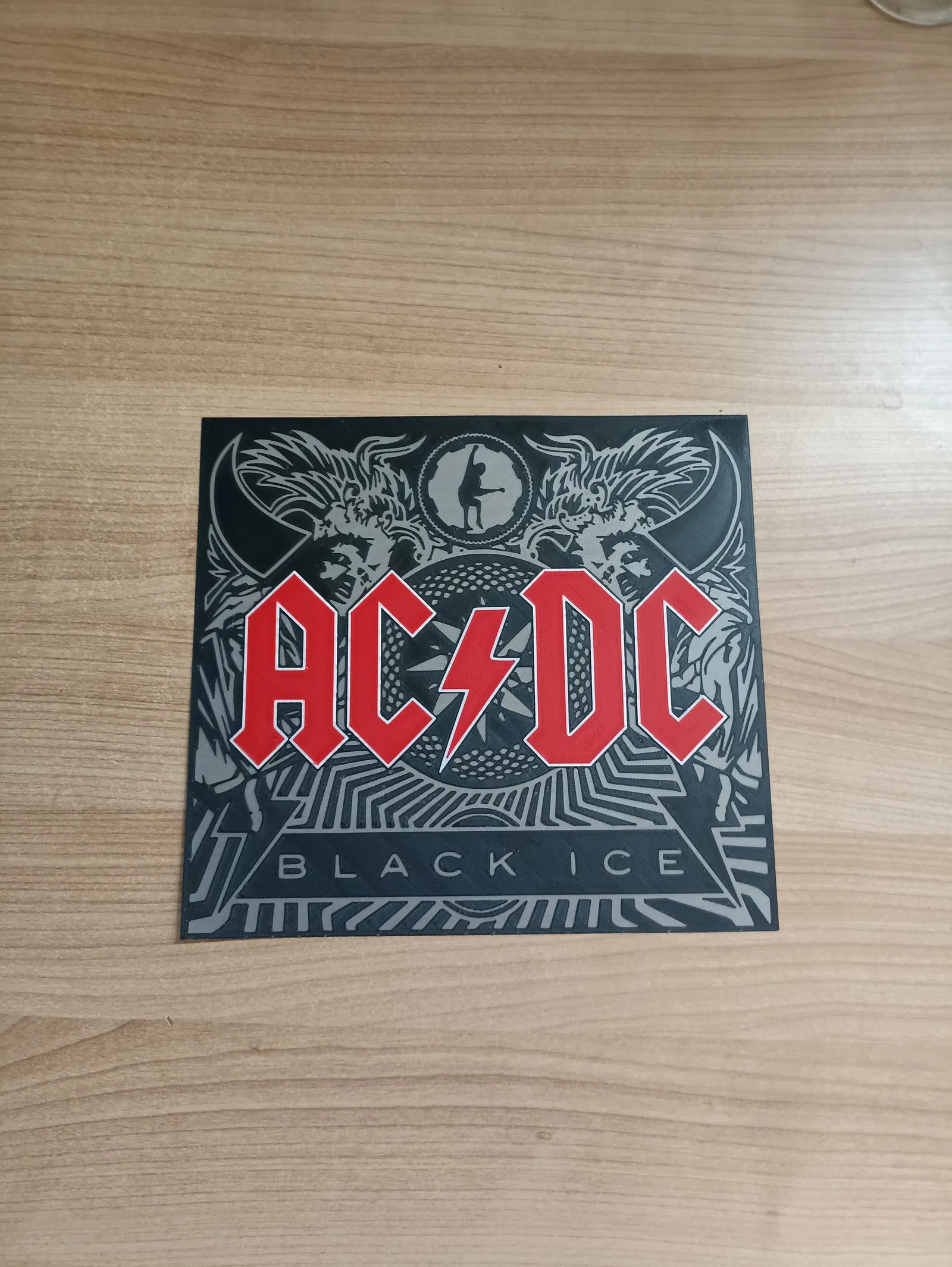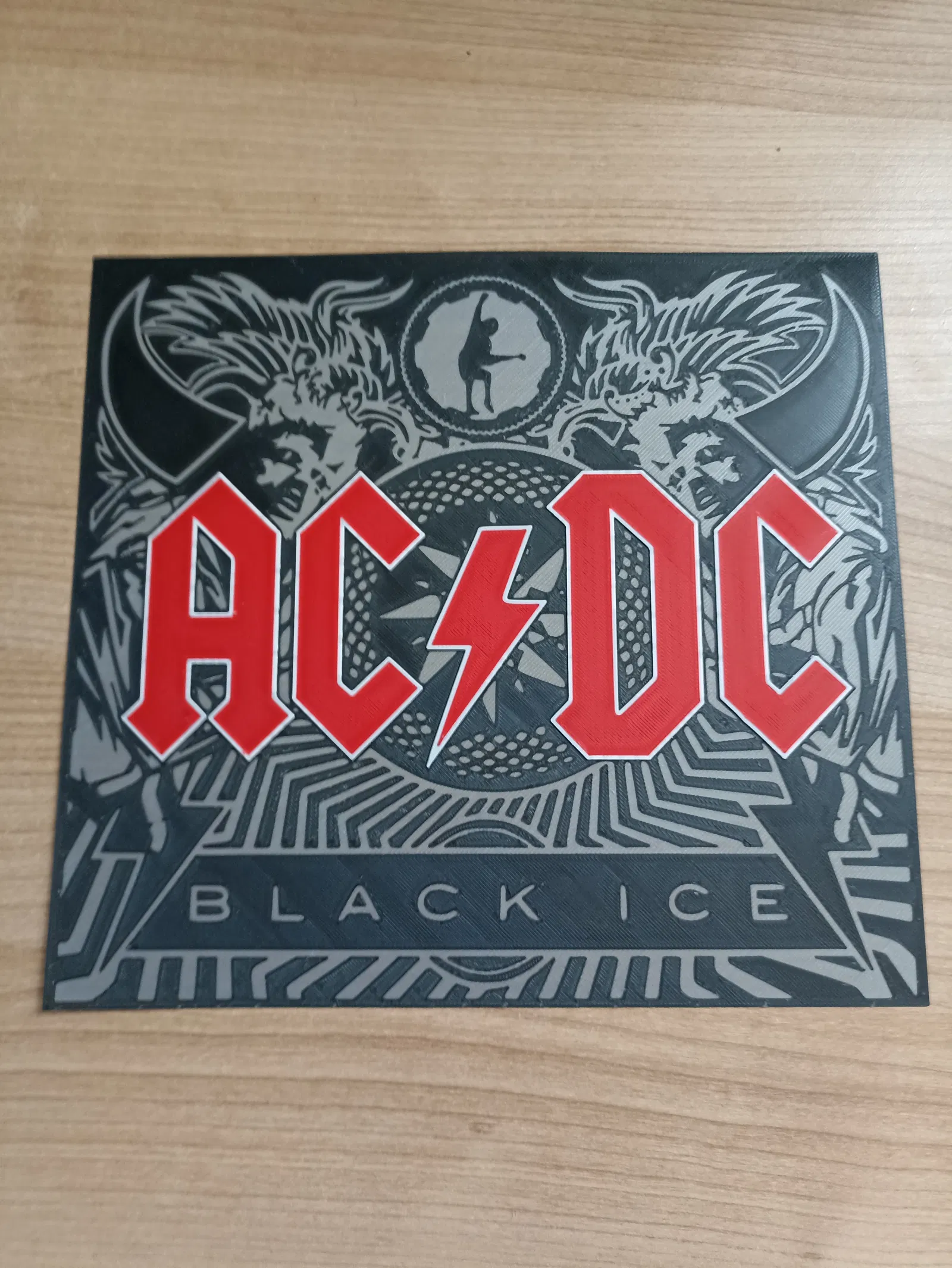 Mô hình 3D bìa album BLACK ICE cực chất, dễ dàng in ấn mà không cần AMS. Hãy dùng 4 màu xám, đen, trắng, đỏ với layer height 0.16 để có kết quả đẹp nhất cho không gian rock của bạn.