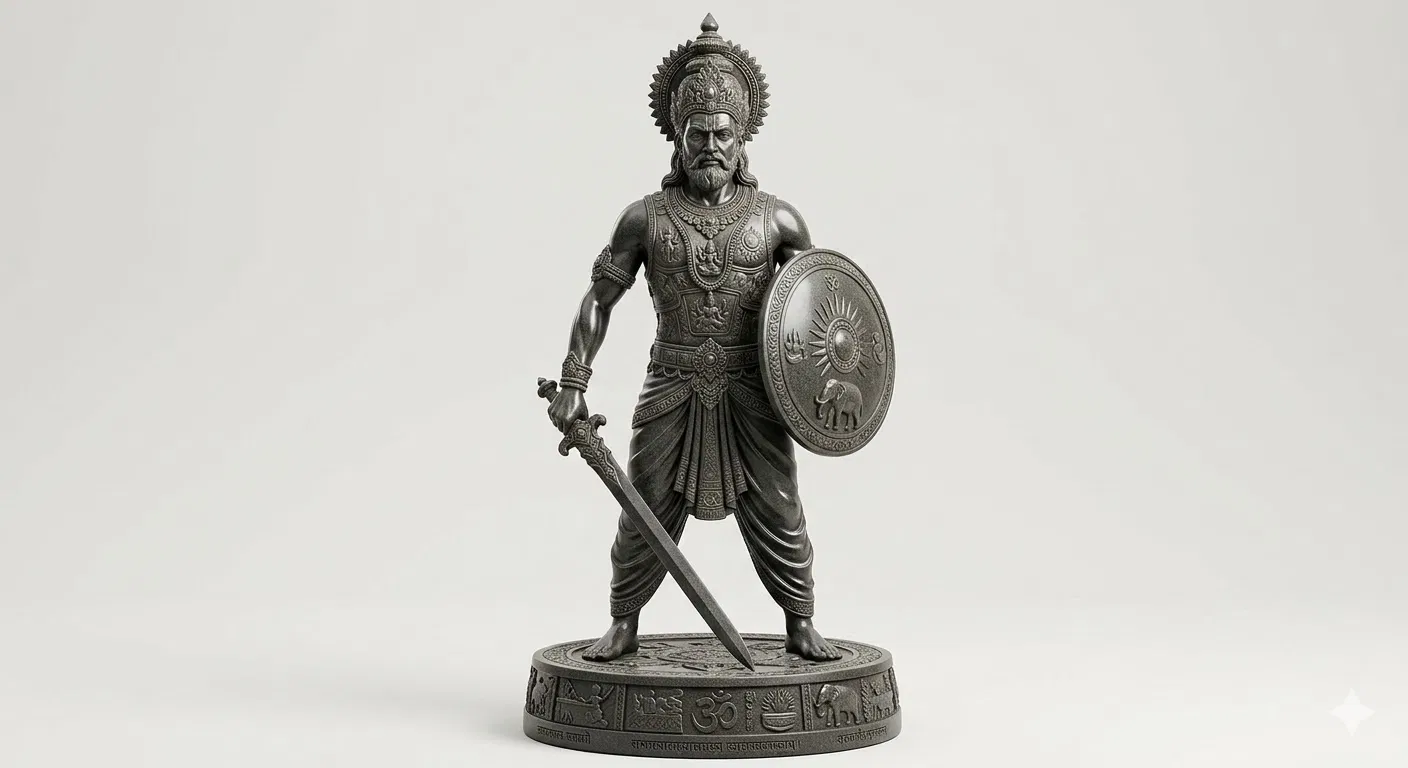 Mô hình vị vua cầm kiếm theo phong cách Ấn Độ cổ đại Vedic/Hindu. Tượng được thiết kế với trang phục chi tiết, yêu cầu sử dụng supports khi in, đặc biệt là quanh vị trí thanh kiếm để đảm bảo độ sắc nét.