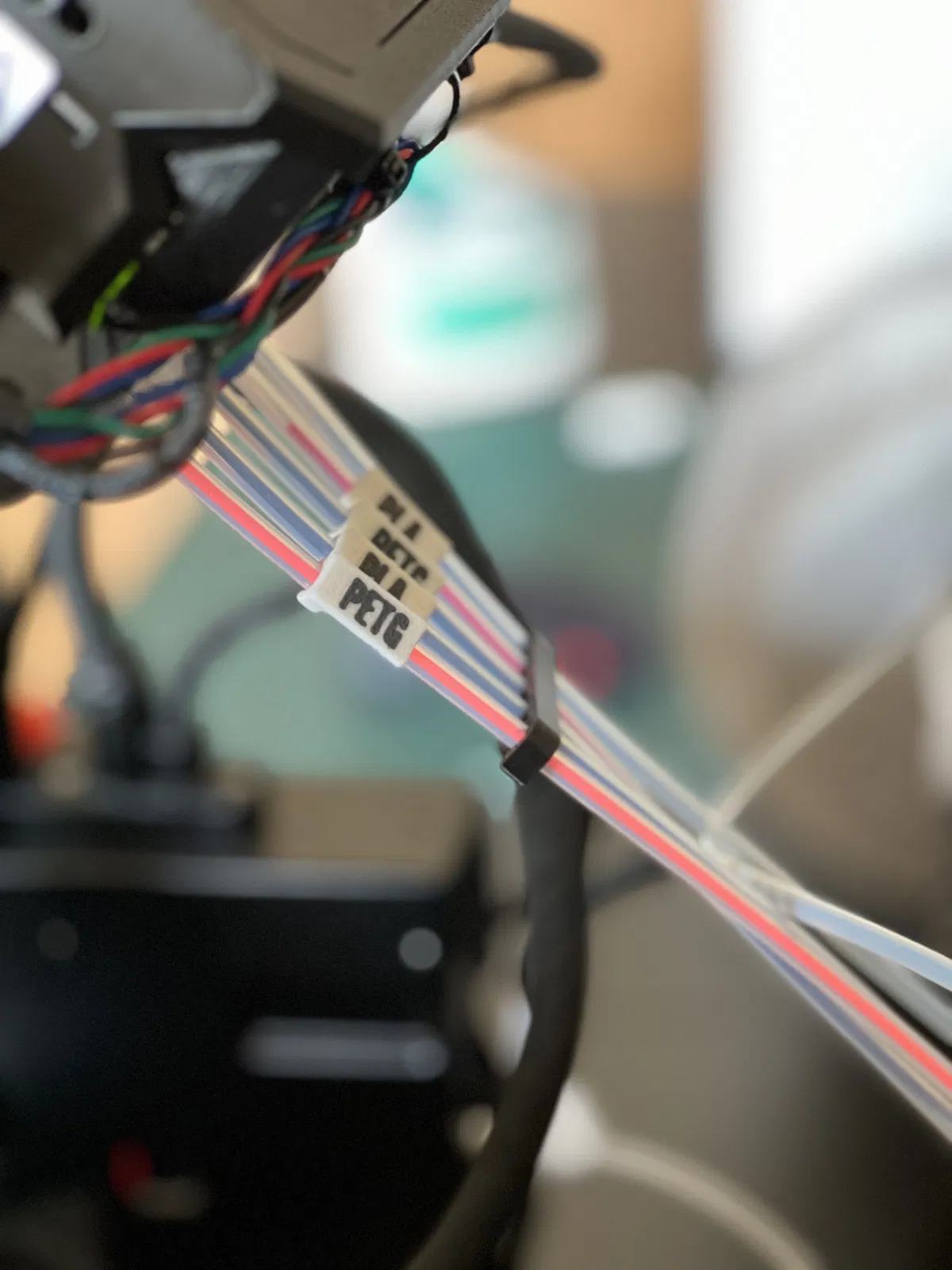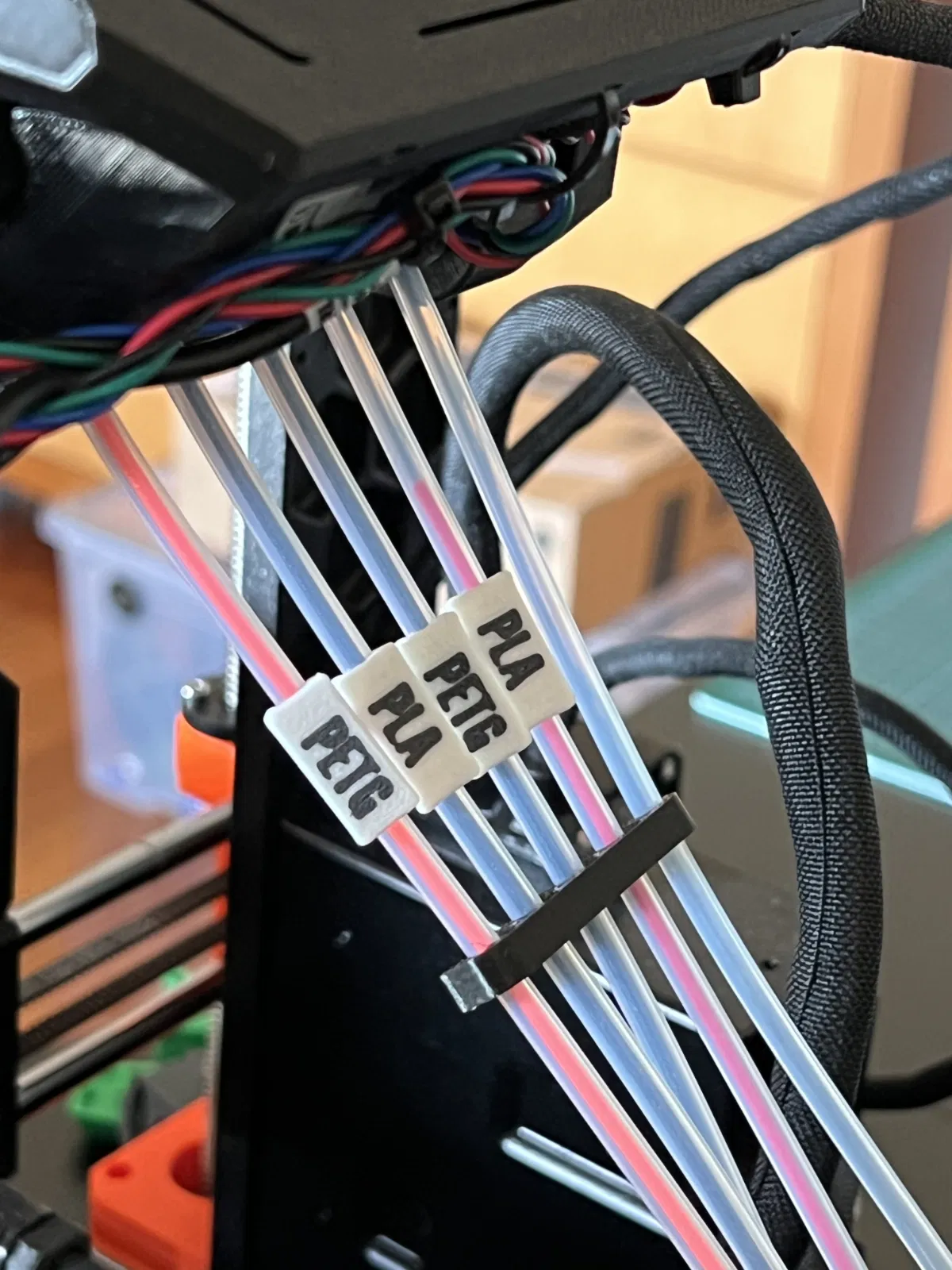 Đây là các thẻ đánh dấu để gắn vào ống PTFE. Đôi khi, 10 ống PTFE được sử dụng với MMU có thể gây nhầm lẫn, đặc biệt là khi mình có các loại vật liệu khác nhau nhưng cùng màu hoặc gần giống màu nhau.