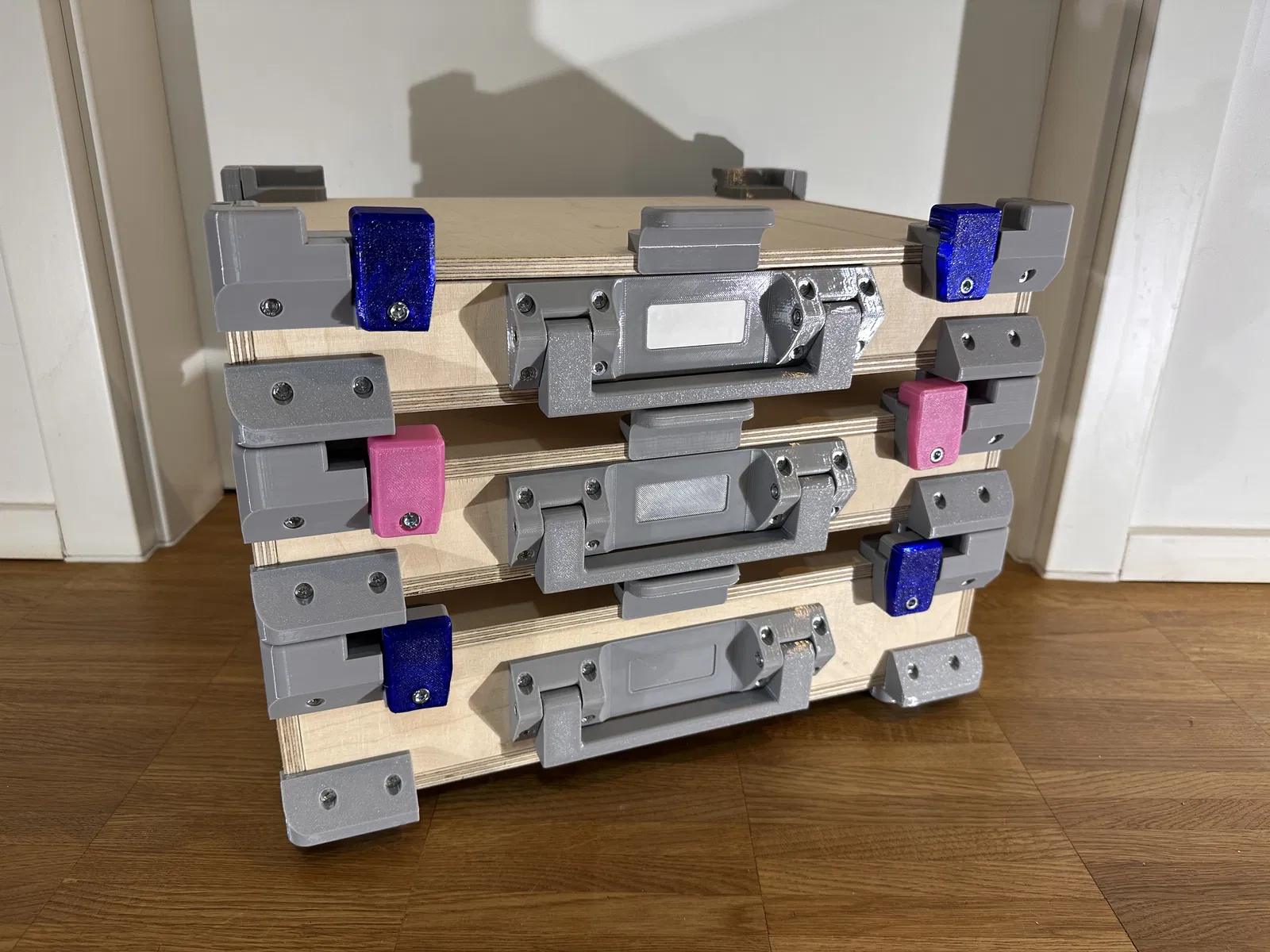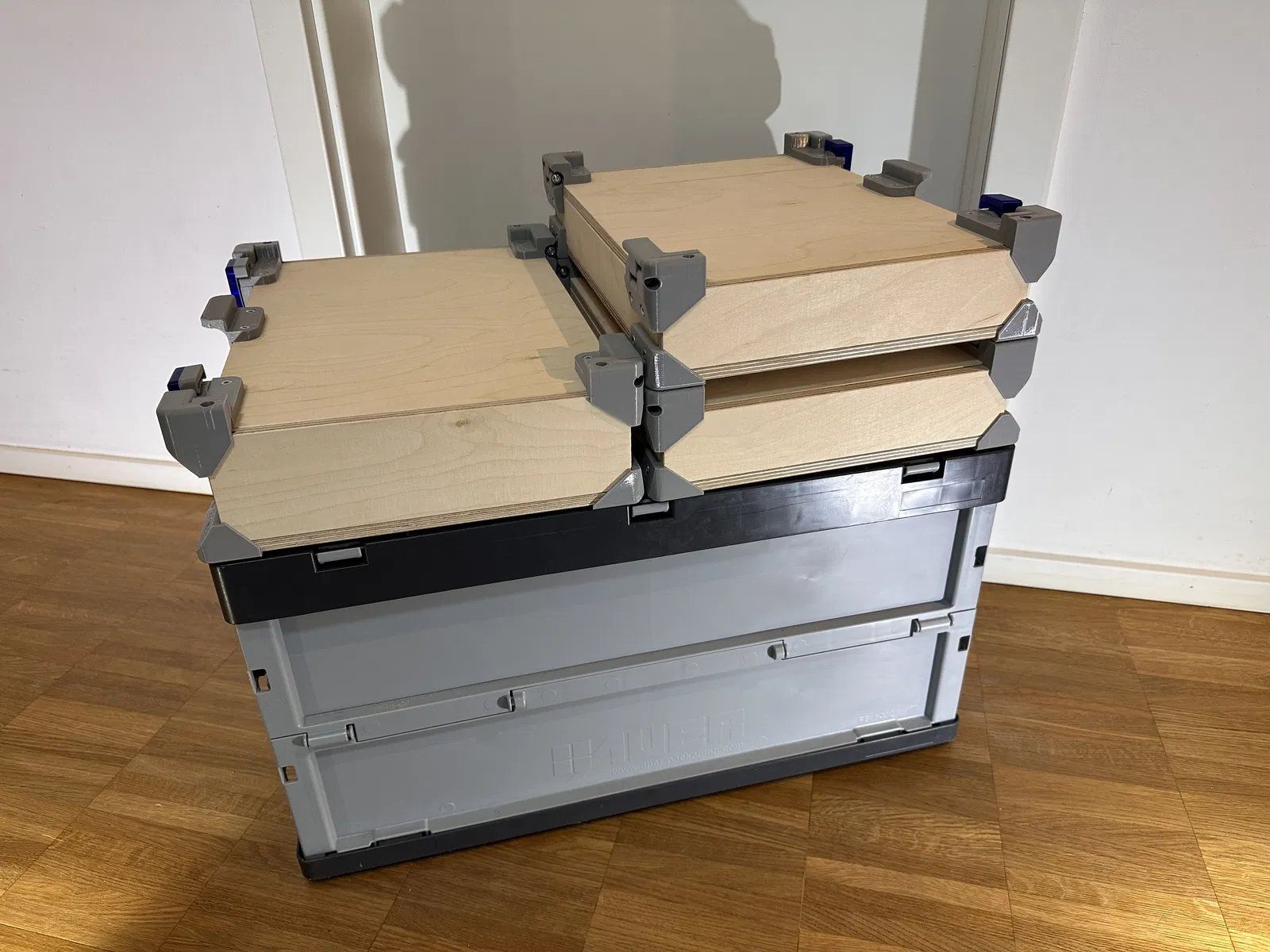 Hệ thống hộp đựng đồ Gridfinity (6×9×6U) từ gỗ ép 9mm, tương thích hoàn toàn với tiêu chuẩn Eurobox. Thiết kế module bền bỉ, dễ lắp ráp với các bộ phận in 3D, giúp tối ưu hóa không gian lưu trữ và sắp xếp linh kiện chuyên nghiệp.