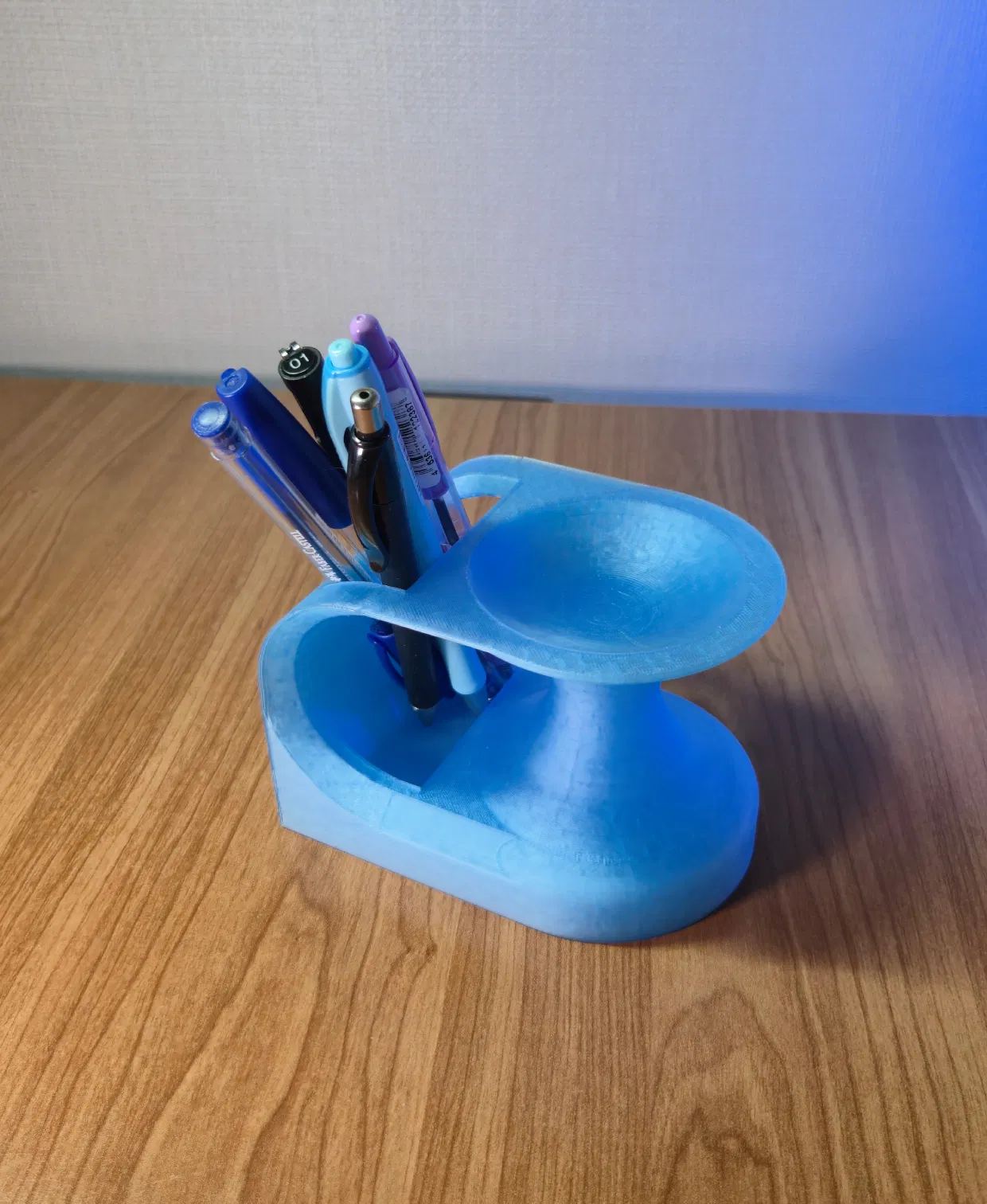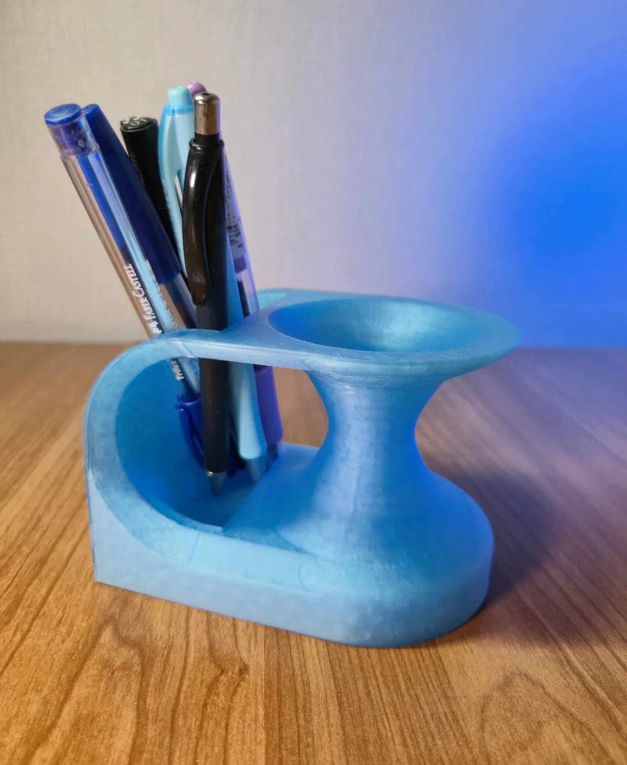 Hình dáng của sản phẩm được lấy cảm hứng từ ý tưởng hố giun (wormhole) bẻ cong không gian, tạo ra những đường nét liền mạch kết nối hai ngăn chứa. Cấu trúc hình học uốn lượn mang lại vẻ ngoài tương lai, nhìn như bất chấp trọng lực, nổi bật hơn hẳn so với các loại hộp đựng bút thông thường. Nó không chỉ đơn thuần là đồ vật lưu trữ mà còn như một món đồ decor nghệ thuật cho bàn làm việc của bạn.