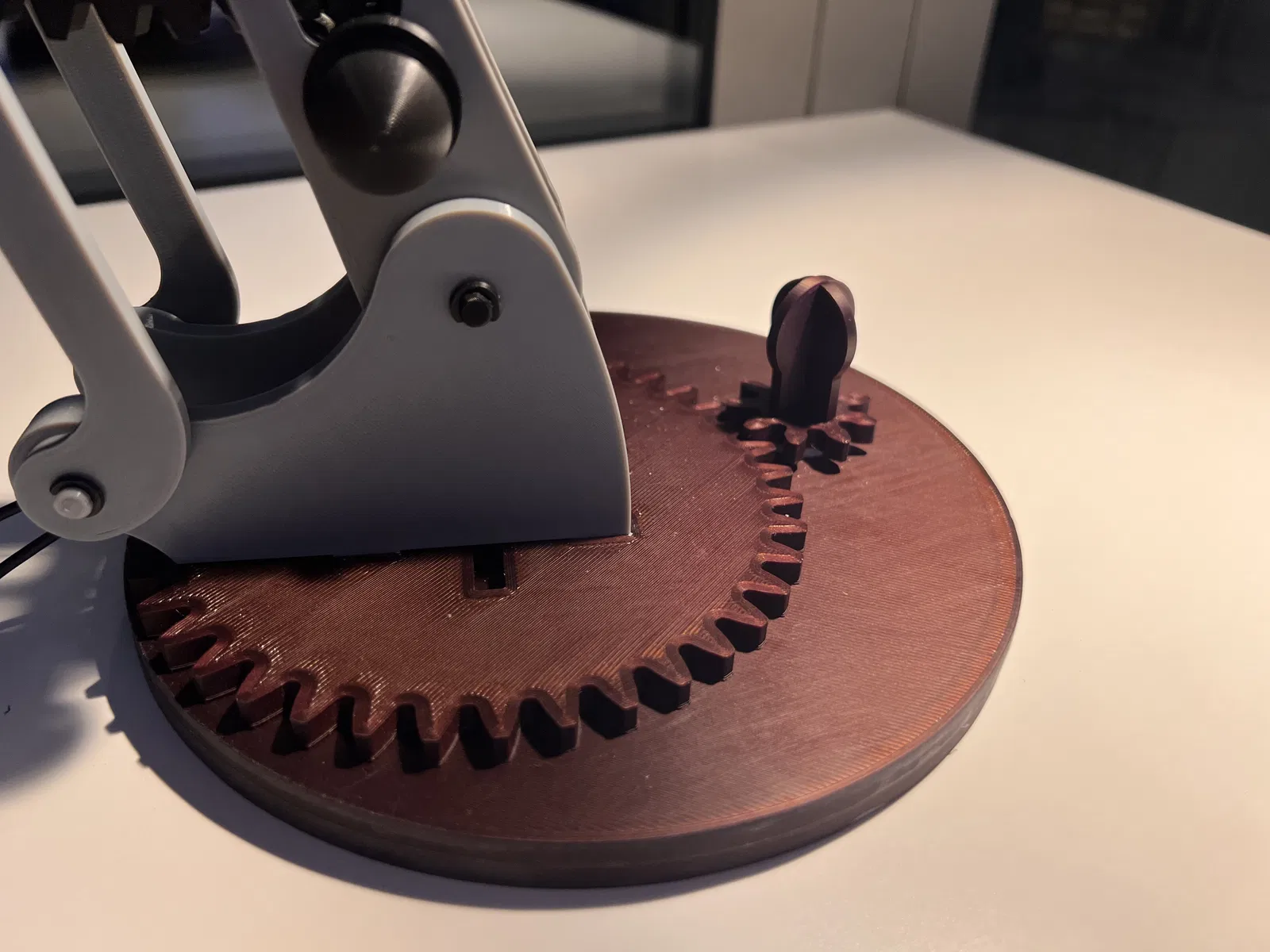 Bạn có thể thử độ xoay; một chút ma sát giữa bánh răng 40t và cánh tay là cố ý để đèn vững chãi hơn.