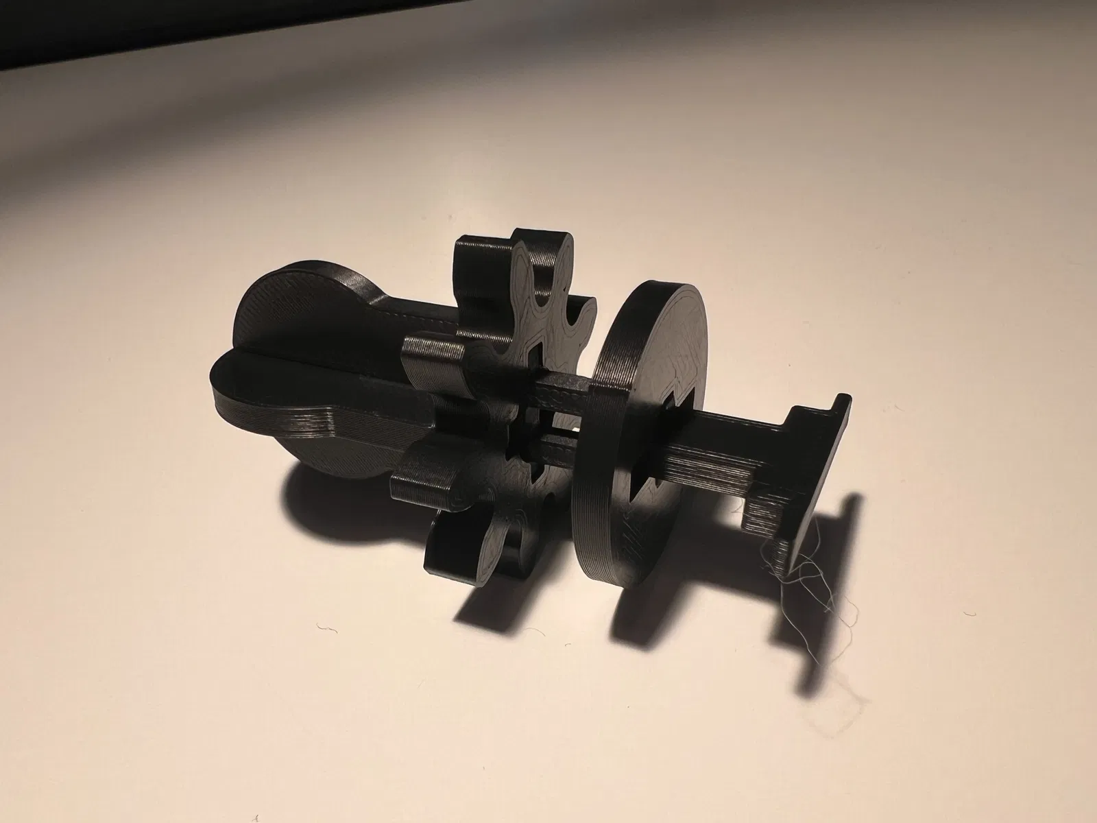 Sử dụng "24 gear bottom.stl" từ mô hình gốc. Đảm bảo các chốt trên đế (base) hướng ra ngoài. Các chi tiết này dạng "press-fit" (lắp ép), tôi dùng búa nhỏ gõ nhẹ. Đẩy trục qua đế và các cánh tay chính, cố định bằng 4 c-clamp.