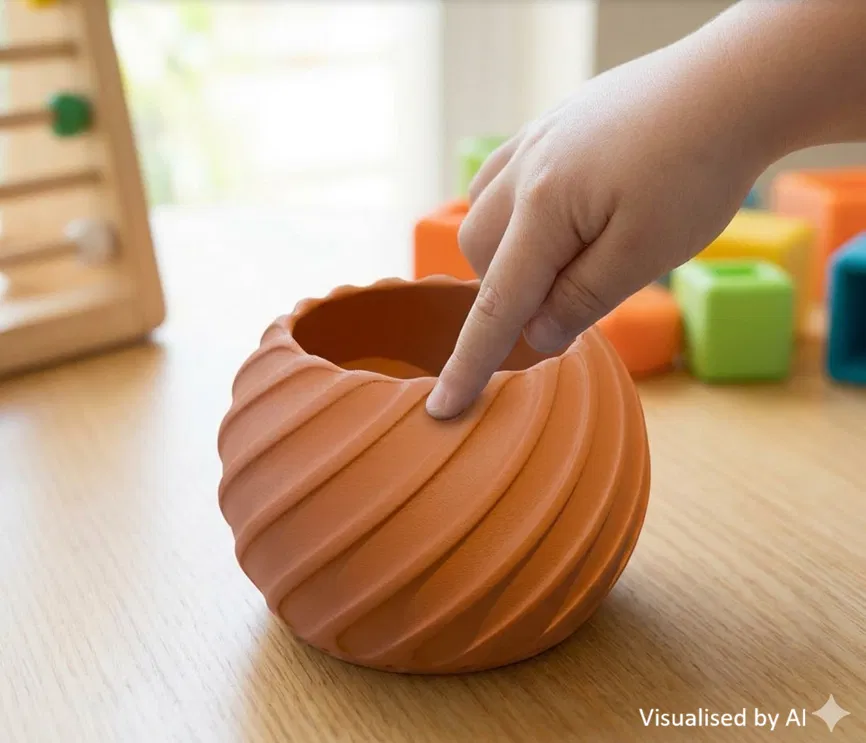 Gợn sóng bên trong: Mặt đáy có họa tiết "giọt mưa"—hoàn hảo để miết nhẹ đầu ngón tay giúp thư giãn hoặc dùng làm con dấu tạo vân trên đất nặn.