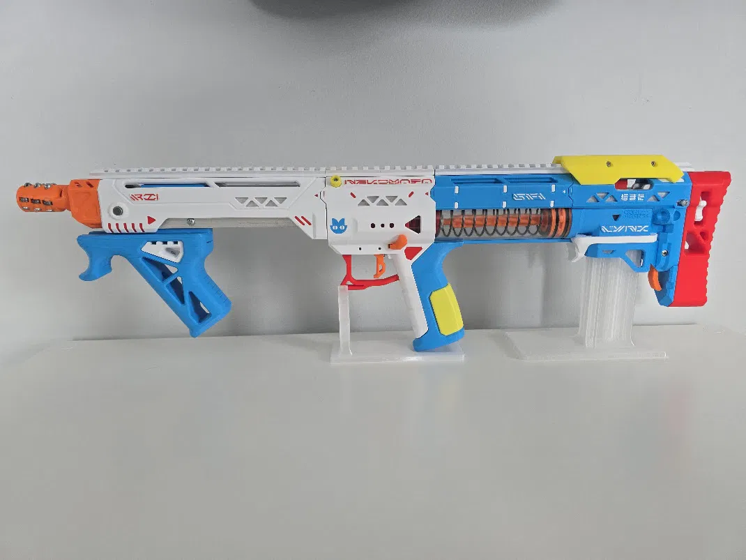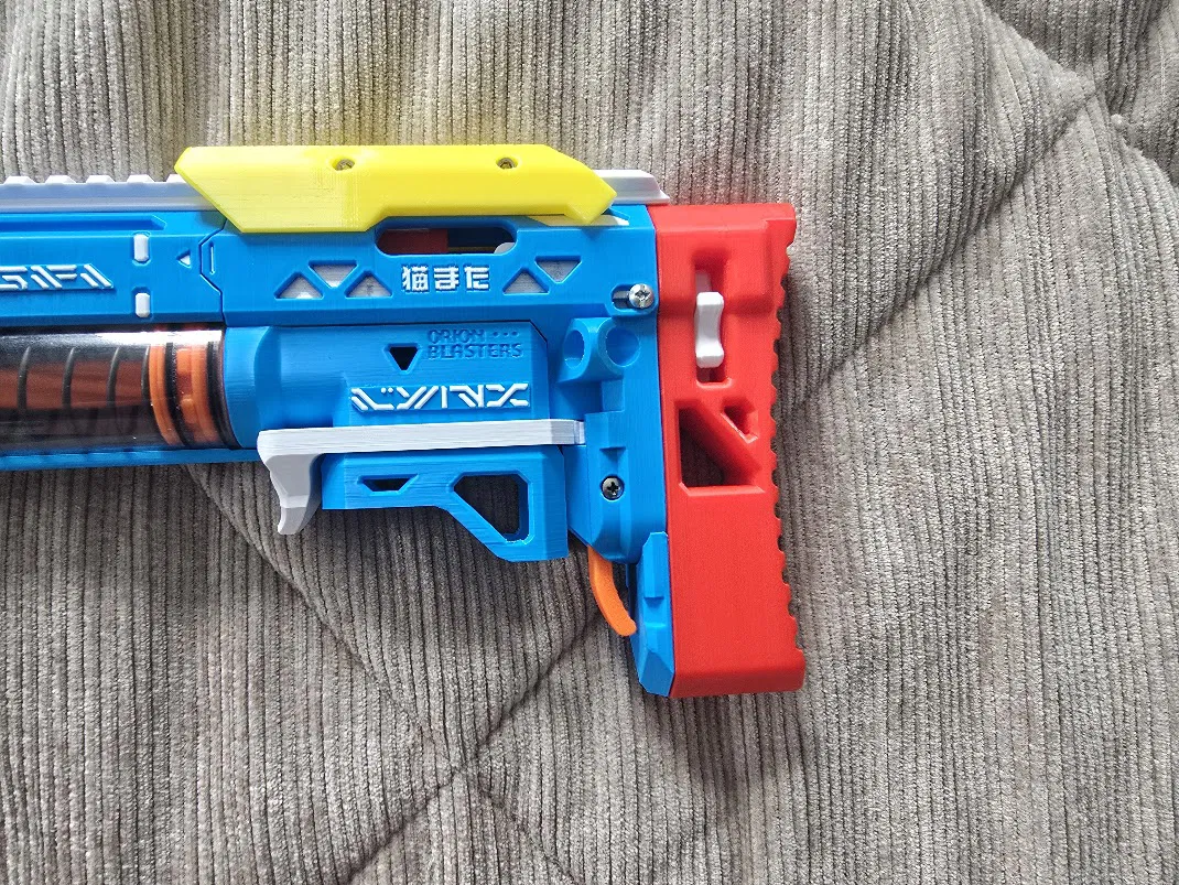 Mình rất thích bản Nekomata remix của Lynx, nhưng lại cực kỳ ưng ý với phần báng súng (stock) dài hơn mà mình đang dùng cho cây Lynx 2.0. Thế là mình đã tìm và kết hợp vài file khác nhau lại để tạo ra phiên bản mở rộng này cho Nekomata. Mình đã dùng một ốc M3 heatset insert vào phần "accent", sau đó bắt vít bằng ốc m3x6. Các bạn cũng có thể chỉ cần dán keo phần accent vào mặt sau của báng súng mở rộng là được.