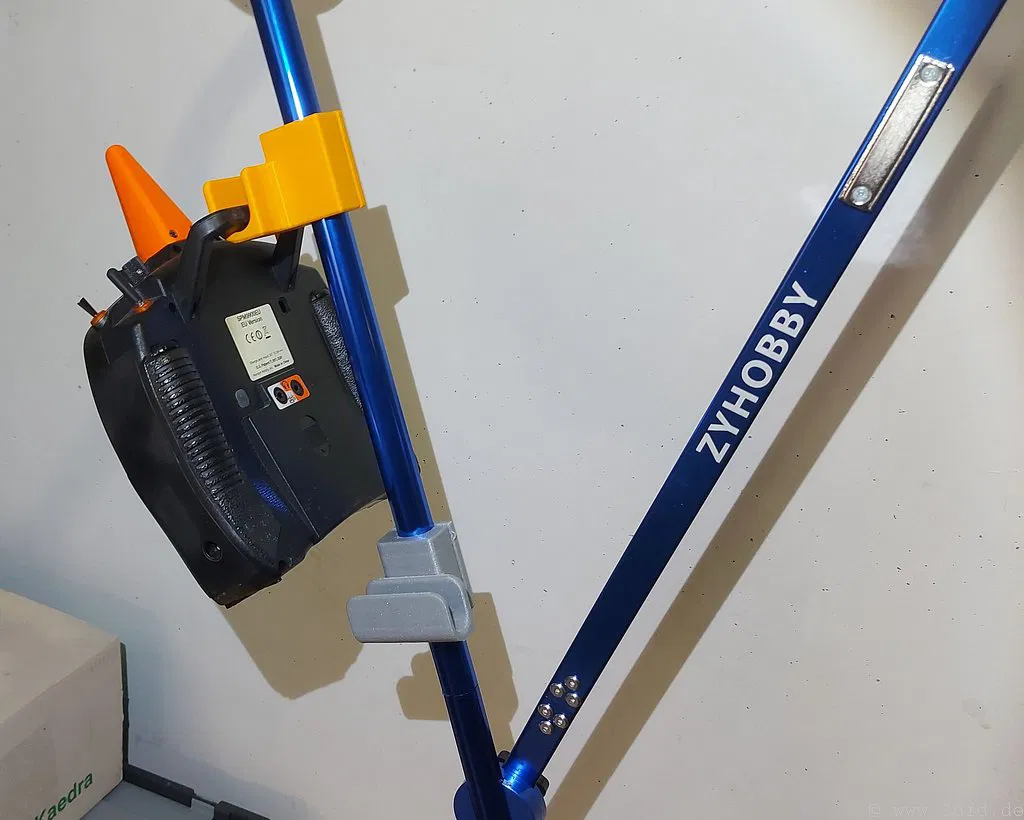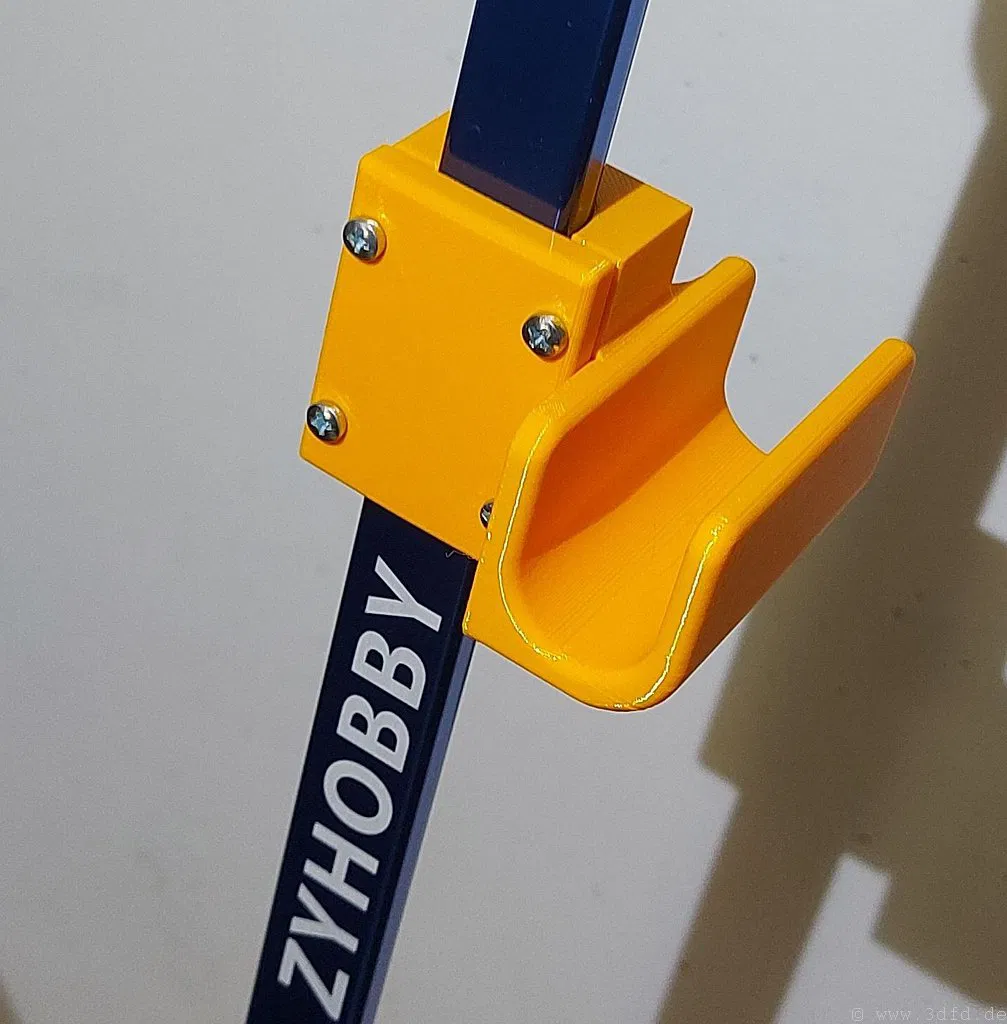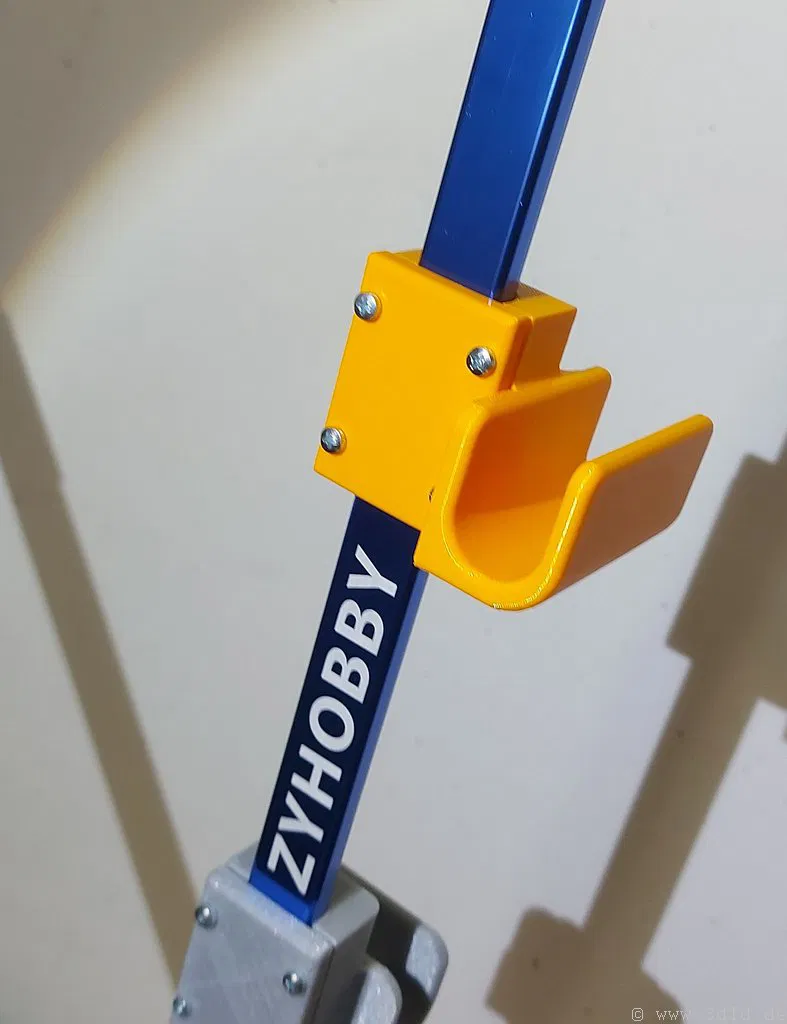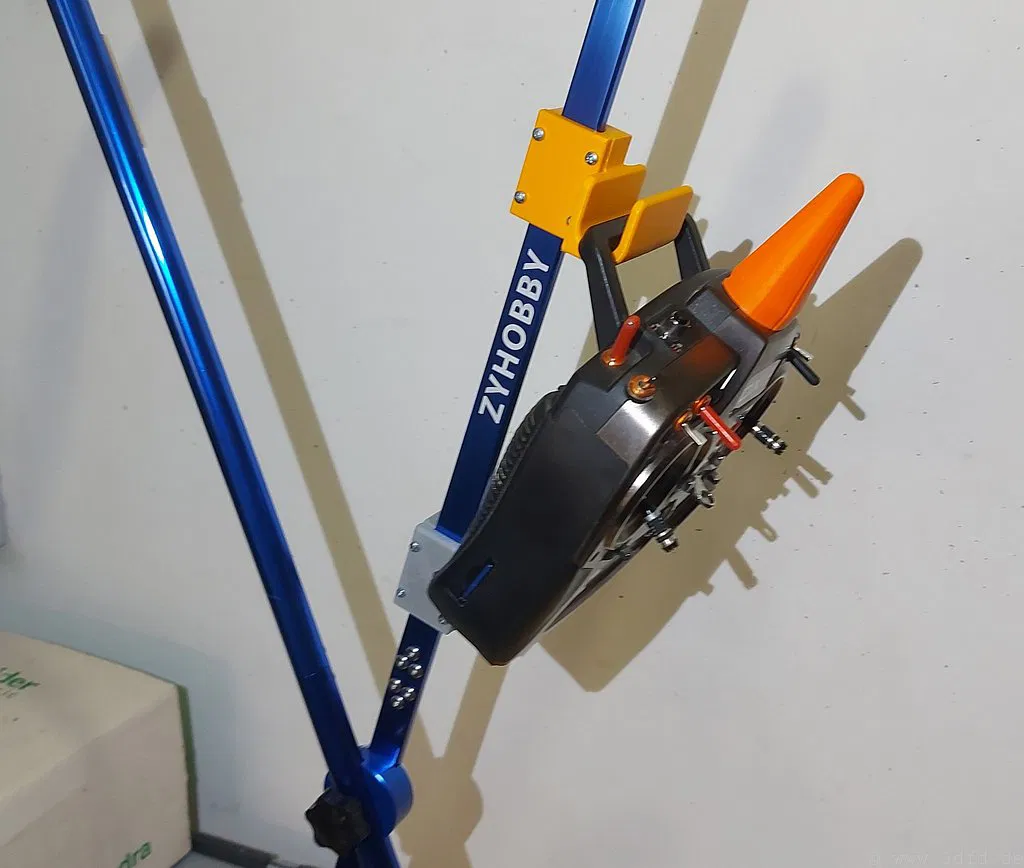 Đây là một giá treo tiện lợi để gắn tay điều khiển RC lên chân đế nhôm. Bạn có thể in giá treo này mà không cần dùng support. Mình đã in thử bằng chất liệu PETG, nhưng dùng ASA cũng rất ổn. Đối với các lỗ ốc M3, bạn chỉ cần dùng mỏ hàn để nung nóng và chèn threaded inserts vào là xong.