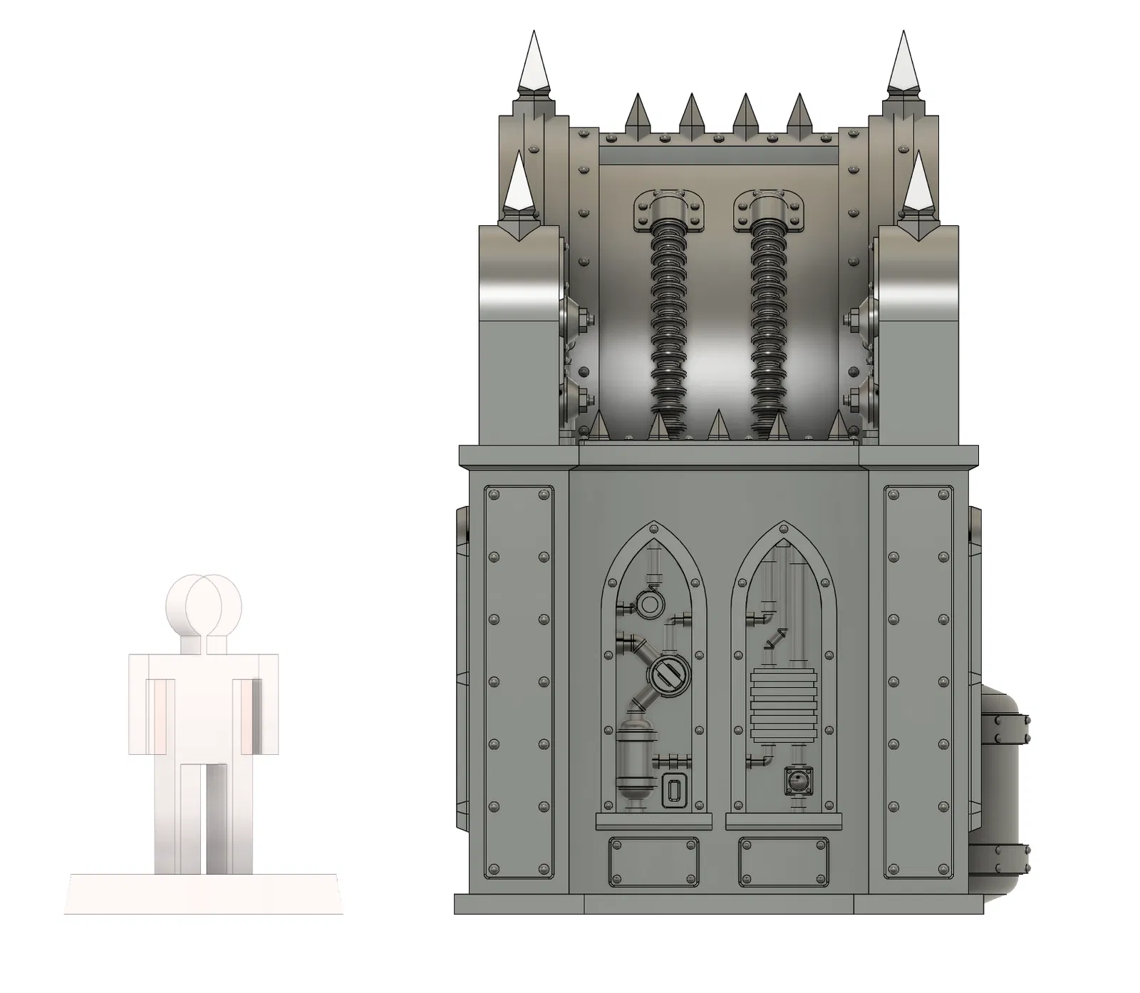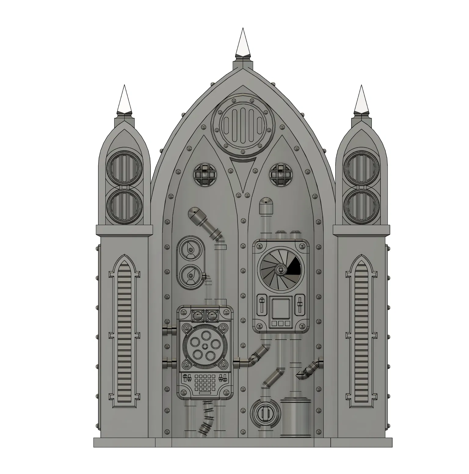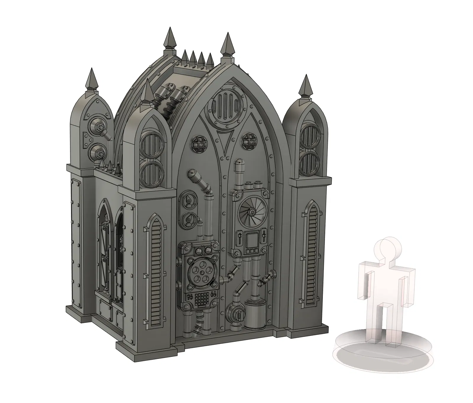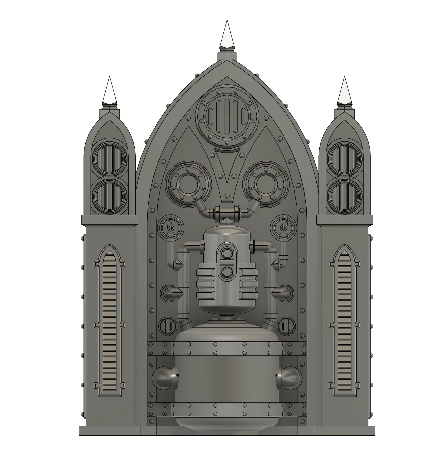 Điểm cộng lớn nhất của mô hình Shrine 1 này chính là sự tỉ mỉ trong từng chi tiết nhỏ. Từ các đường ống dẫn khí, bảng điều khiển với những vòng xoay kỹ thuật, cho đến những chi tiết trang trí hình vòm nhọn, tất cả đều được chế tác để làm bật lên vẻ ngoài 'hầm hố' của một di tích viễn tưởng. Đặc biệt, người thiết kế đã rất tâm lý khi tối ưu hóa cấu trúc để bạn có thể in 3D toàn bộ mà không cần phải dùng đến các cấu trúc hỗ trợ (supports) phức tạp, tiết kiệm rất nhiều thời gian xử lý hậu kỳ và tránh làm hỏng bề mặt chi tiết sau khi in.